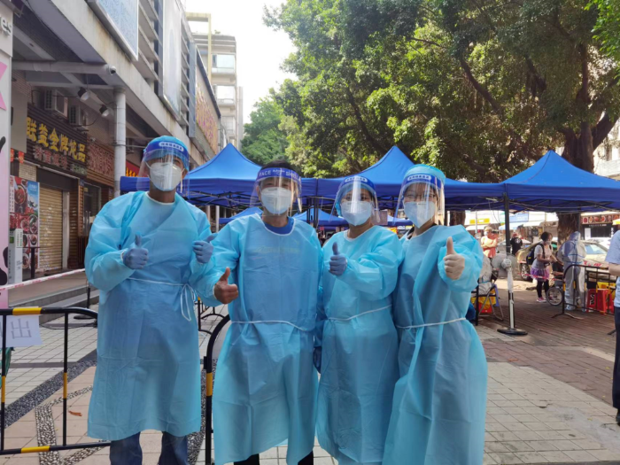广州市街舞运动协会袁智斌等同志,在海珠区连续开展4轮全员核酸检测期间,主动报名、积极投身到社区抗疫志愿服务中,支援龙凤街道核酸检测工作,协助街坊核酸扫码登记、维持现场秩序等。