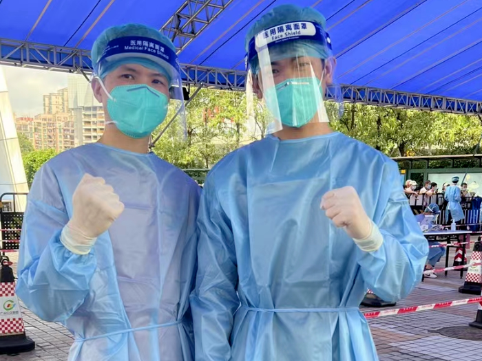 广州市举重健美协会张伯权等同志,在4月12日参与党员下沉天河区兴华街道,协作社区全员核酸检测、维持秩序等服务工作。黄晓强同志参与广州体育职业技术学院全体教职工核酸检测志愿服务工作。