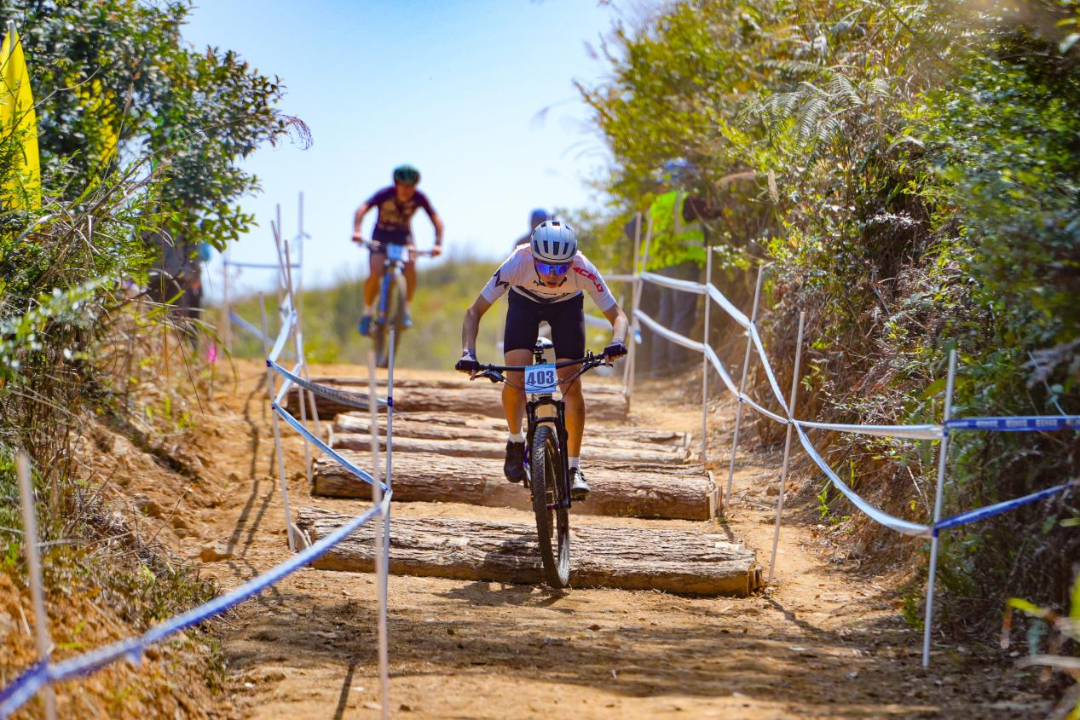 目光移至1.1公里环湖赛道,战况同样激烈。男子短道越野赛、男、女青少年组山地越野赛及男子淘汰越野赛如火如荼进行。依水而建的赛道设有木板、石块、圆木障碍与弯墙,考验车手瞬间爆发力、控车及速度能力。