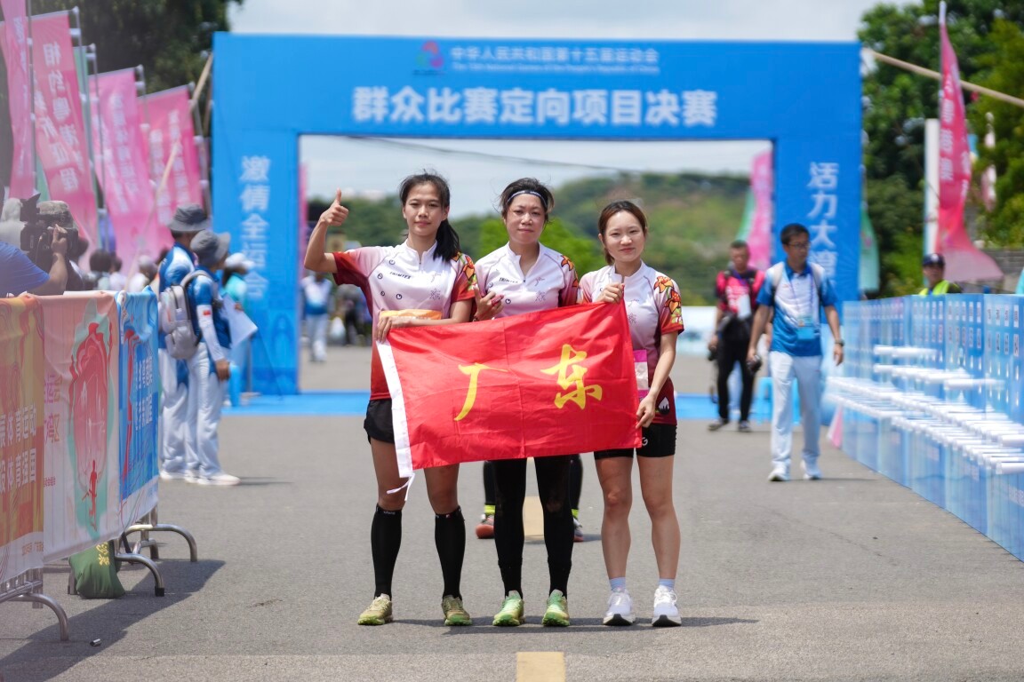 5月8日上午,第十五届全国运动会群众赛事活动定向项目决赛在茂名举行。在女子定向接力赛决赛中,由陈淑娜、叶琦、郑嘉怡组队出战的广东队以2小时24分29秒的成绩成功夺冠。这是广东队在本次赛事斩获的第2枚金牌!