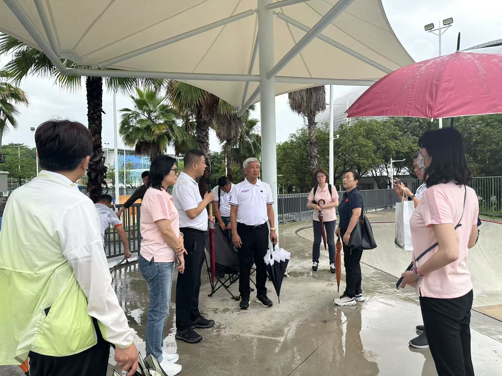 随后,访问团赴广州大学城体育中心参观滑板运动场地,开展座谈交流,围绕滑板运动的推广策略、赛事组织以及青少年后备人才培养等进行研讨。