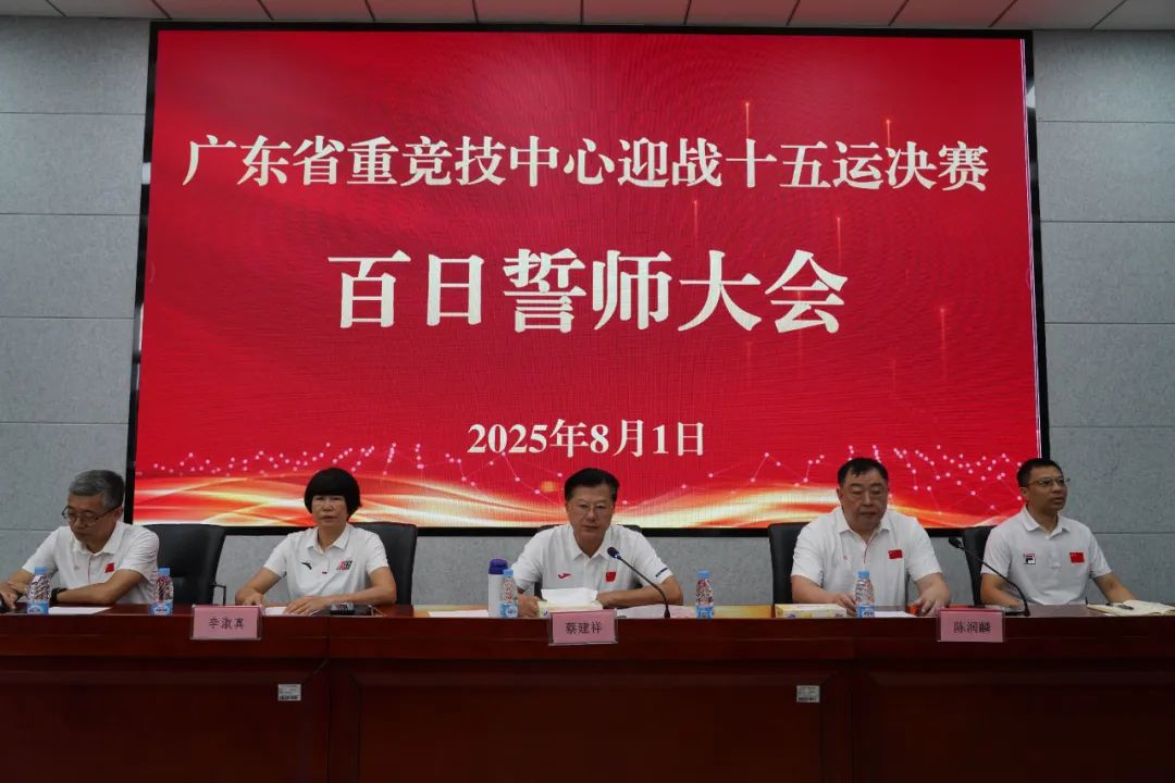 8月1日,在十五运会倒计时100天之际,广东省二沙体育训练中心、广东省黄村体育训练中心、广东省重竞技体育训练中心分别举办百日誓师大会,吹响冲锋号角。