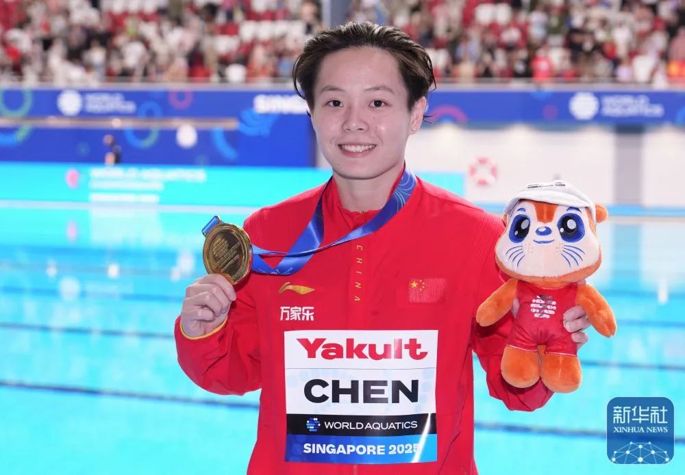 8月2日,在新加坡举行的2025年世界游泳锦标赛跳水项目女子3米板决赛中,粤将陈艺文以389.70分成功登顶,勇夺金牌。