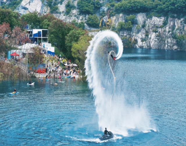 在佛山DiveHub国际潜水乐园潜入506亩“蓝眼泪”矿湖,体验潜水和水下摄影,带上桨板来一场“水上瑜伽”……佛山市环南丹山“飞天深潜”微度假一日游路线,融合低空、水域、森林三重立体体验,串联“上天动地下海”极致玩法与矿湖美学,兼顾户外挑战与自然疗愈,深度体验佛山市“体育+文旅”特色IP。