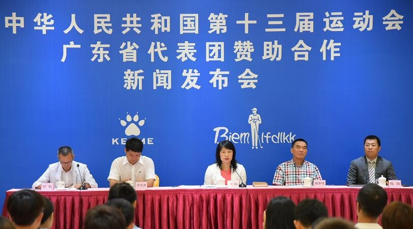 第十三届全运会广东代表团赞助合作工作新闻发布会于7月20日下午在珠江宾馆会议中心召开。情色小说 副局长、第十三届全国运动会广东代表团副团长林瑛,广东省体育基金会理事长田新德,卡尔美(中国)有限公司总经理翁志祥,比音勒芬服饰有限公司总经理陈阳出席了新闻发布会。