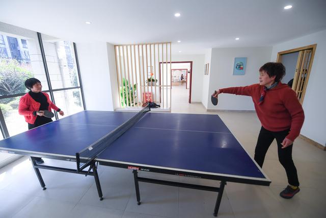 从2021年下半年开始,浙江省诸暨市在多个街道社区推进小区文化驿站建设。图为居民在文化驿站内打乒乓球。新华社记者徐昱摄