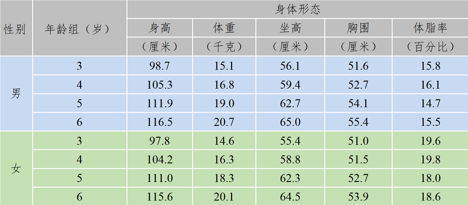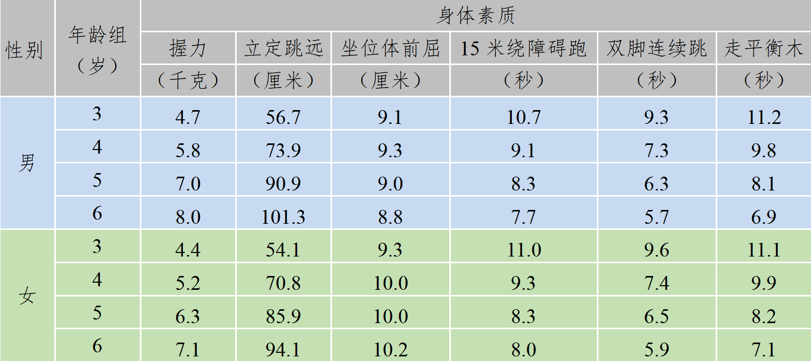[1]《国民体质测定标准》(2023年修订版)从身体形态、机能、素质三个方面对体质进行测试与评定,《标准》采用单项评分、综合评价的方法,综合评级分为优秀、良好、合格和不合格四个等级,适用人群为幼儿、成年人和老年人。