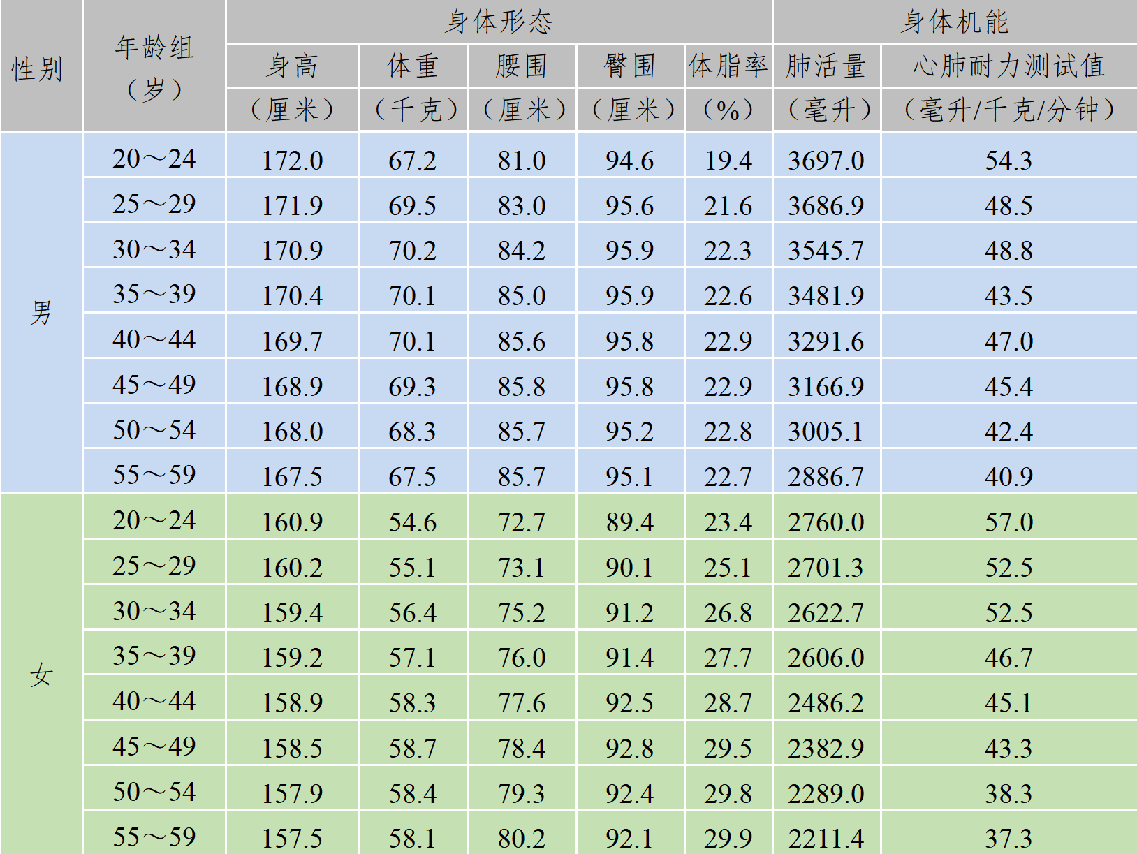 从优良率、合格率以及优良率增长幅度来看,女性体质水平均优于男性,且这一特征在成年人中更为突出。成年女性在心肺耐力、肌肉力量、肌肉耐力、反应能力以及平衡能力等身体机能和身体素质相关指标平均水平增长幅度均大于男性。反映有氧耐力水平和反应能力的指标,男性老年人增长幅度大于女性老年人;而反映肺活量、平衡能力和力量素质的指标,则为女性老年人增幅大于男性老年人。老年人柔韧性下降明显,尤其女性,应引起关注。