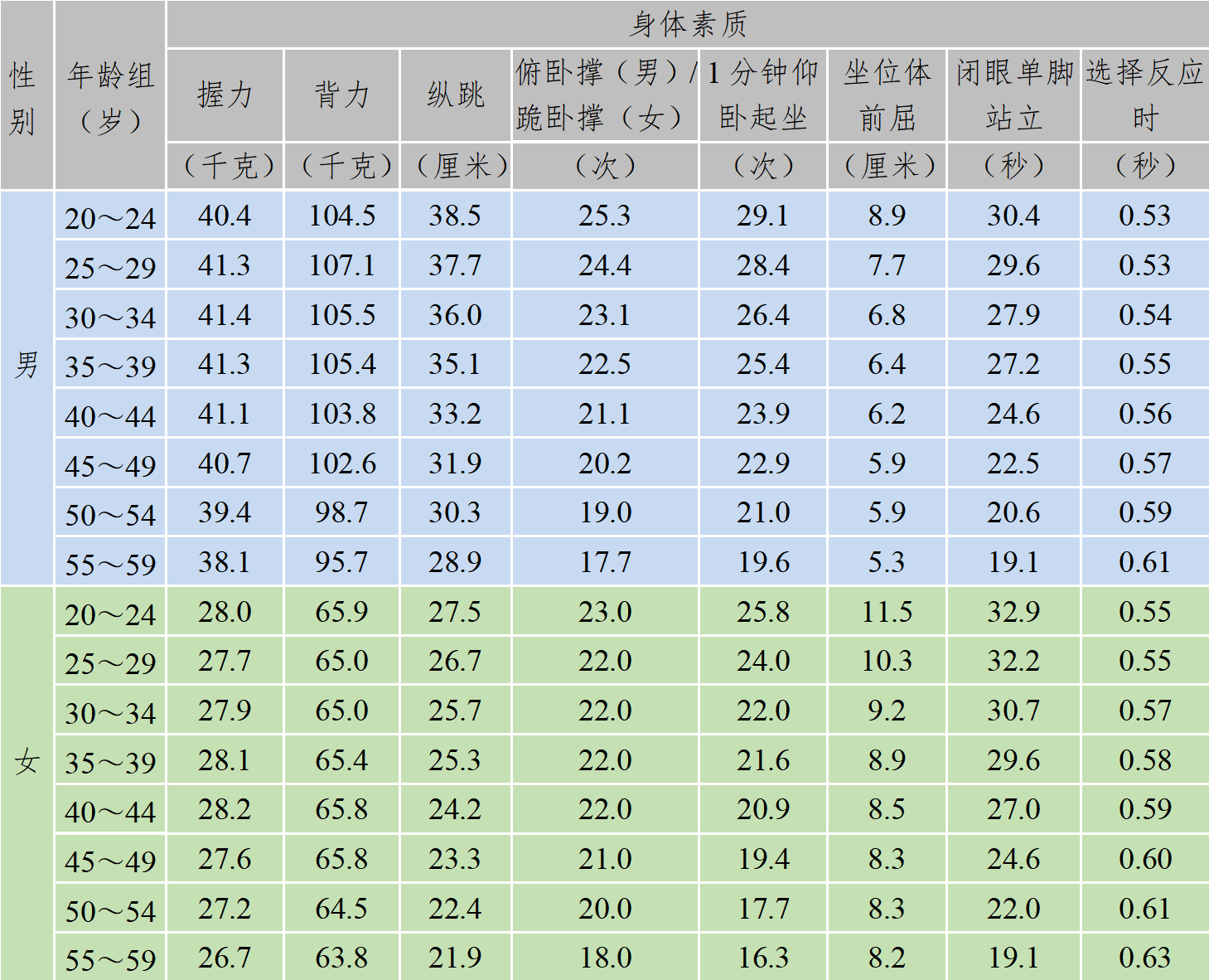 (一)国民体质单项指标