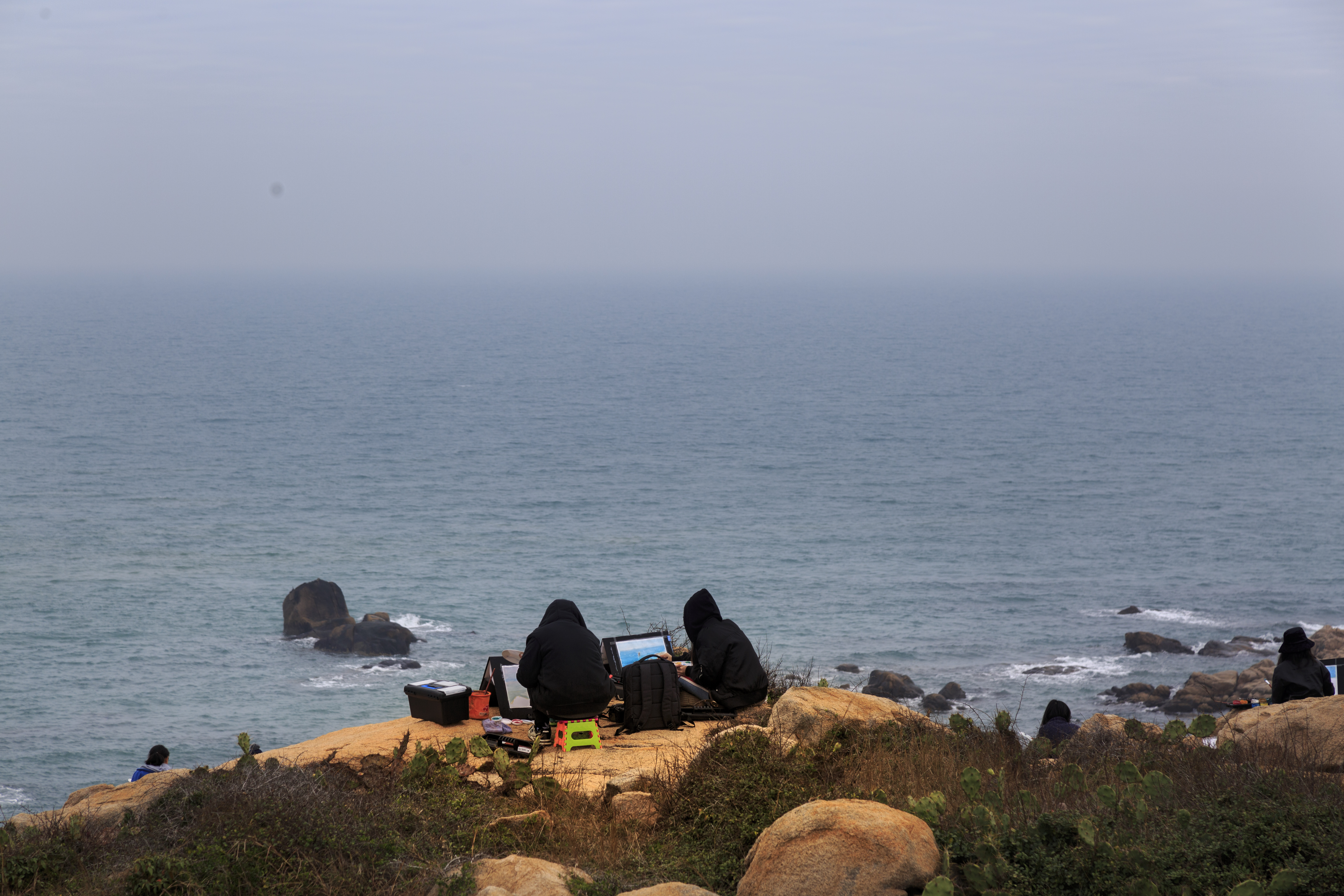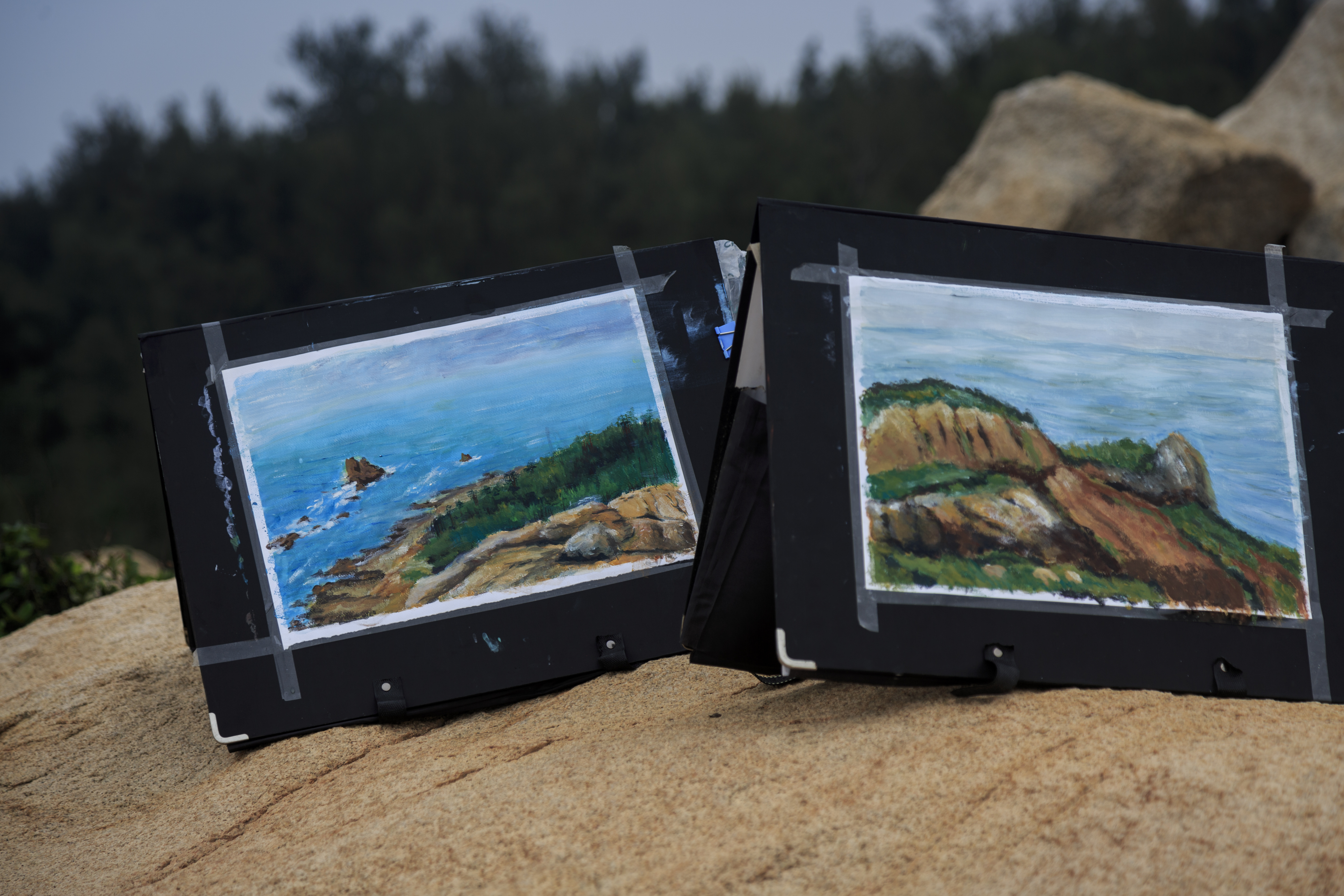 这次实践是周洁老师主持的“风景画”课程教学实践,目的是在课堂与现实社会及大自然之间建立一座桥梁,让学生们领略自然的魅力与时代的精神面貌。在此三天短暂的行程中,师生们集中精力研究了棋子湾奇石的独特造型,海岸色彩的光线变化,色调倾向等,并将其显示在画面上。