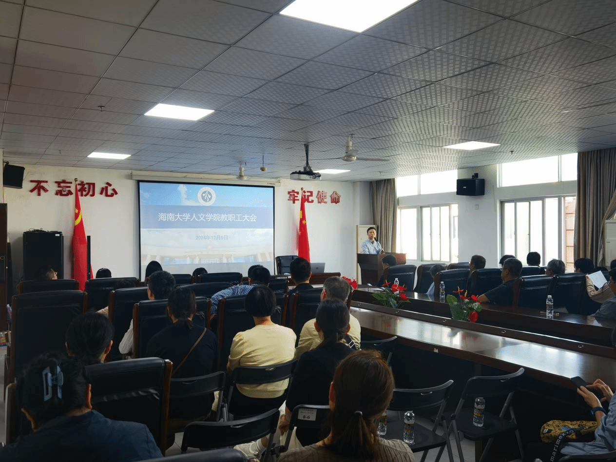 在社科楼B719会议室召开全体教职工大会。会议由学院党委书记杨元广主持,学院领导班子成员和全体教职工参加会议。