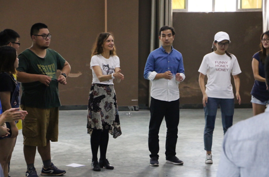 此外,娜塔莎?戴维斯女士与同学们进行了形式丰富,内容多样的互动。她先让同学们摇晃自己的身体,试图体会“失衡”的状态,学会控制身体中的“能量圈”。随后,又邀请同学们说出舞台表演时最害怕听到的词汇,并以此为主题进行表演。来自戏剧影视专业17级新生蔡文怡表示,经过了娜塔莎?戴维斯女士的悉心指导,自己对表演艺术有了更加深层次的理解,她将把今天学到的新想法、新思路带入到今后的实践当中。