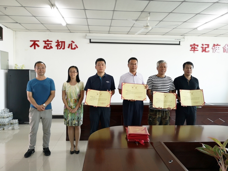 人文传播学院副院长石晓岩、戏剧影视系主任鞠斐为校外导师发聘书并合影留念。
