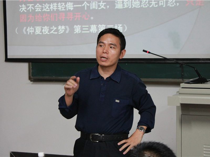 戏剧影视文学专业的老师教和一百多名学生现场聆听了整个讲座。 刘复生副院长首先为大家介绍了邓菡彬博士兼备理论与实践之长的身份,引发了听众们对邓菡彬博士讲座的极大兴趣。邓菡彬博士的讲座从对现下风靡全国的“原创风”的批判开始,他以《楚门的世界》等为例,结合自己的教学与演出经历,一针见血地指出了现下所谓的“原创”太多的遭受了意识形态的干扰。这就很容易出现“以为我们在创造,其实离艺术创造越来越远”的现象。邓菡彬博士更加痛心的是“经典风”的衰弱。他从莎士比亚的作品出发,现场与听众分享了,他对莎翁戏剧名段的独特理解。为了激发同学们对经典的热情,邓菡彬博士鼓励在场同学主动朗诵了莎翁戏剧名段。随后他进行了一一点评,指导同学们如何在理解剧中人物性格的基础上还原特定情境中的人物对白。 虽然只是《从原创到经典的漫长回归》的上半讲,但已经让同学们大呼收获过瘾,在得到邓菡彬博士警示的同时,更加深了对经典的兴趣,同学们纷纷表示十分期待周六的下半场讲座。