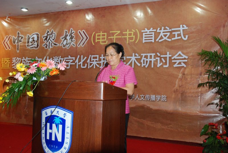 首先致辞,他对《中国黎族》(电子书)的出版和发行表示祝贺,并对与会的领导和专家学者表示感谢。