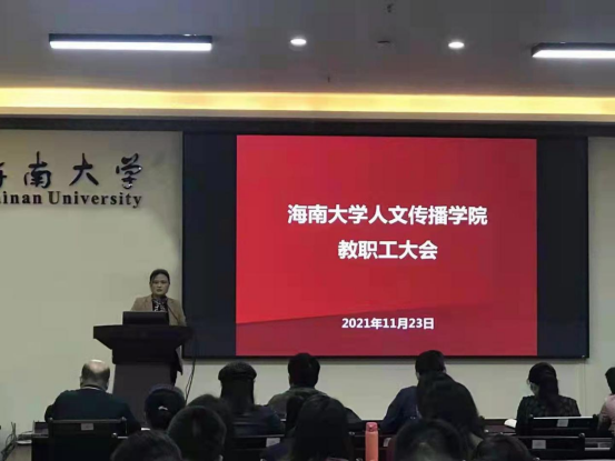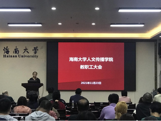 2021年11月23日下午,人文传播学院在社科楼B112会议室召开教职工大会,部署安全稳定工作、完全学分制和协同创新中心改革,落实就业工作。学院领导班子成员和全院教职工参加会议,会议由党委书记邱华祥主持。各位院领导就各自分管的工作进行了部署。