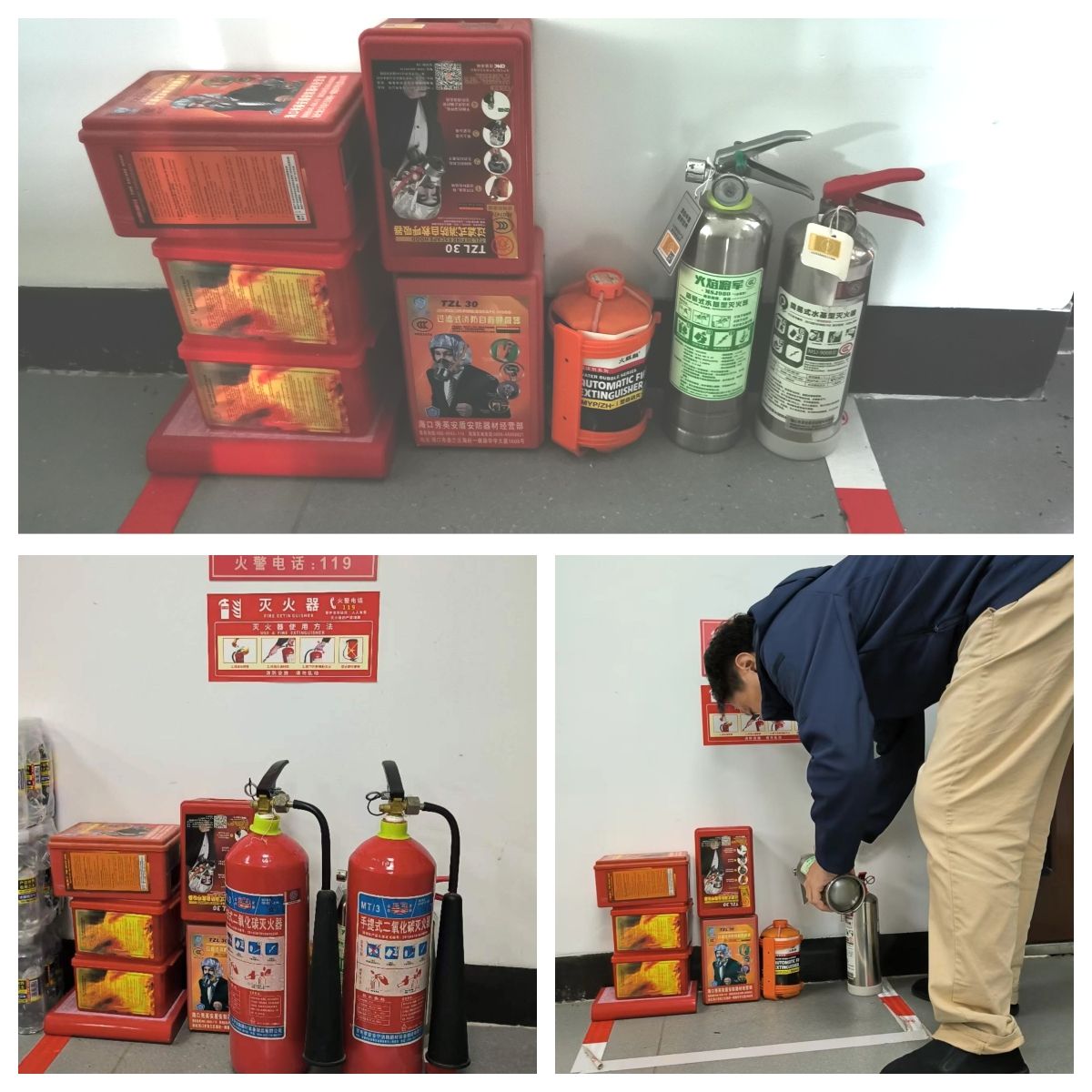 本次安全检查没有发现任何私自乱拉电线或随意放置消防器材的情况。但是部分实验室配备的消防器材类型并不符合规定,理应使用二氧化碳灭火器而非水基型灭火器。李彩霞副院长高度重视这一问题,并迅速采取了相应的整改措施,以确保实验室的安全得到了妥善保障。