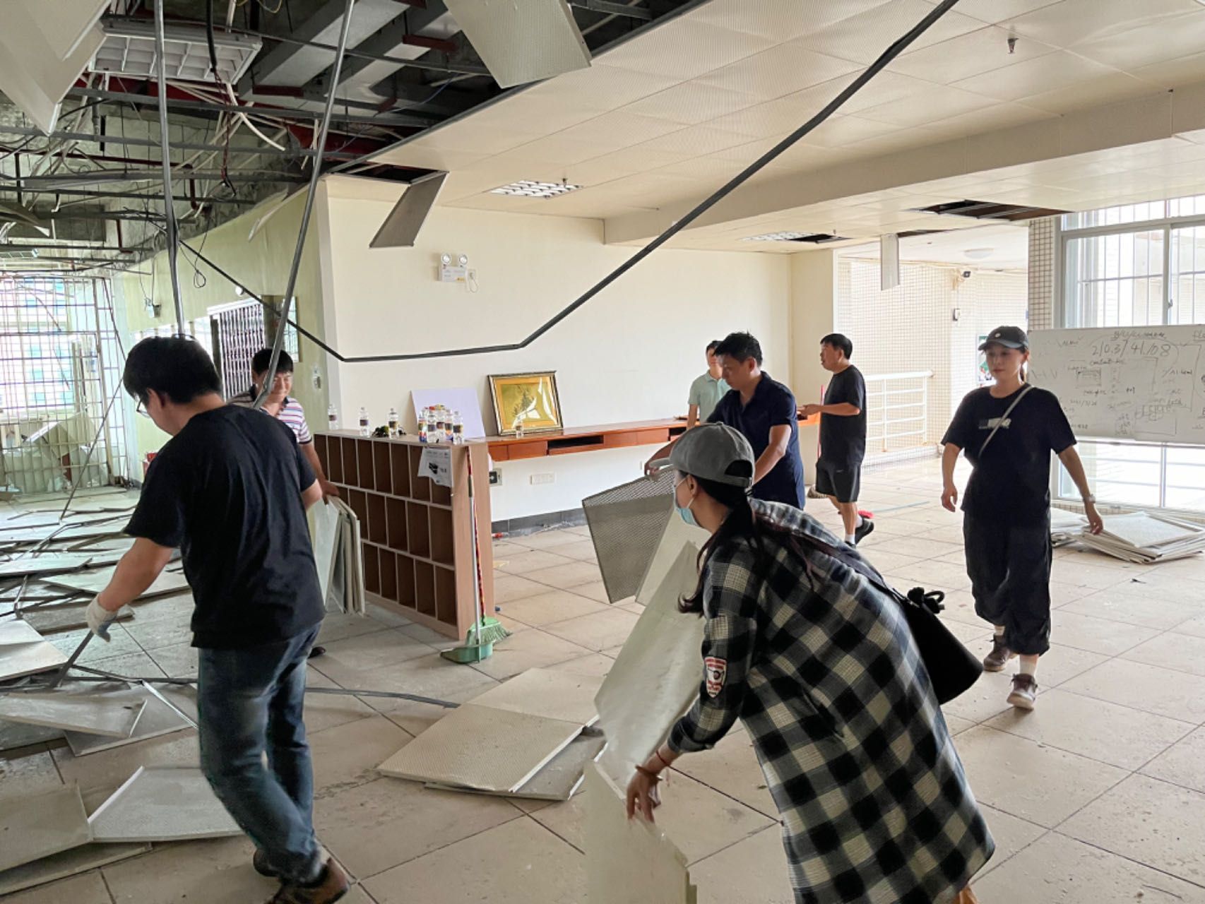 党委闻令而动、听令而行,由学院领导班子牵头,党员和教职工志愿者组成先锋队从9月7日开始,全面开展灾后秩序恢复工作,让党旗在灾后学校秩序恢复工作一线高高飘扬!