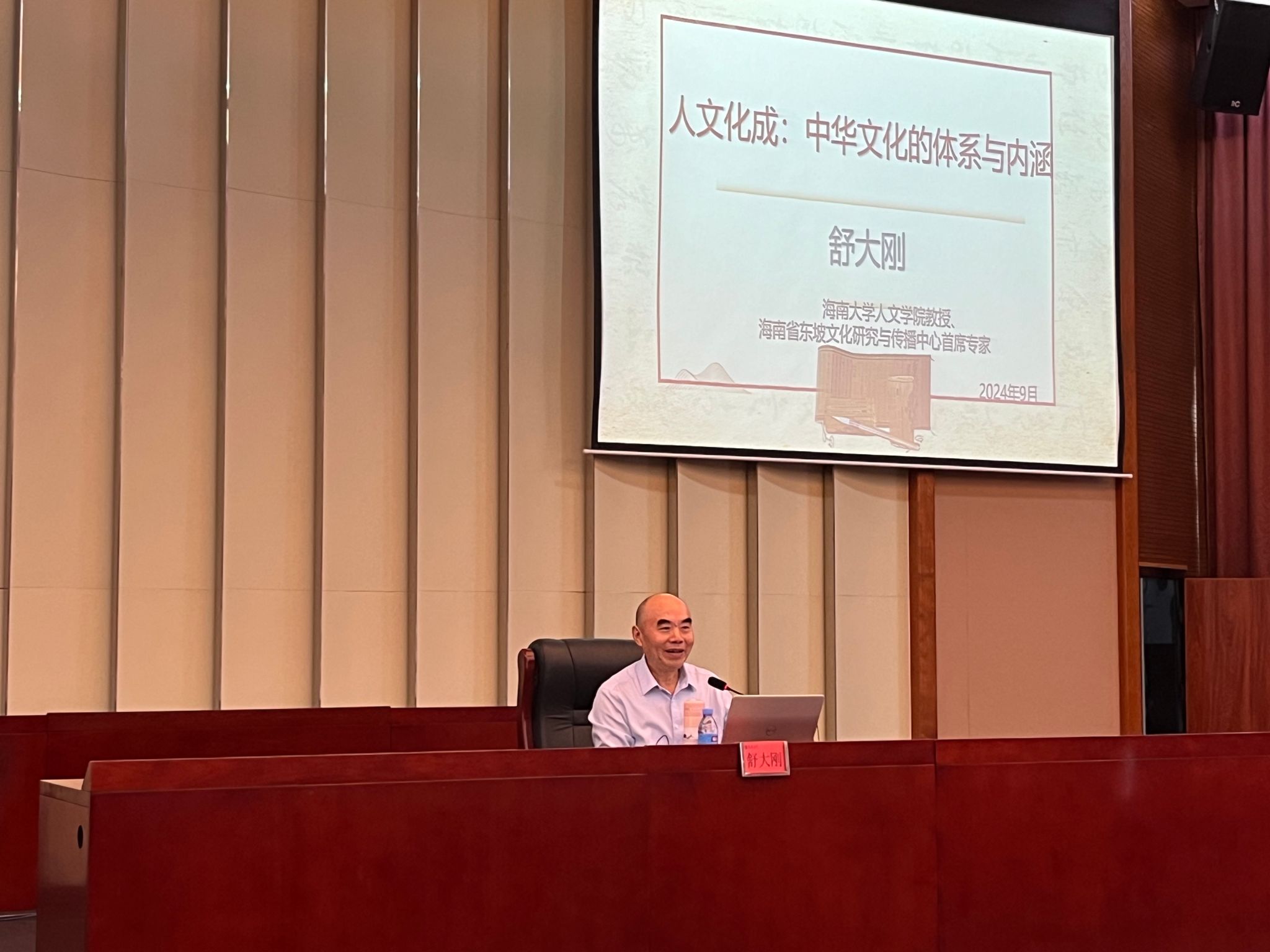 教授,海南省东坡文化研究与传播中心首席专家舒大刚教授为2024级新生带来了题为“人文化成:中华文化的体系与内涵”讲座,深入探讨了中华文化的本质与意义。讲座由情色小说