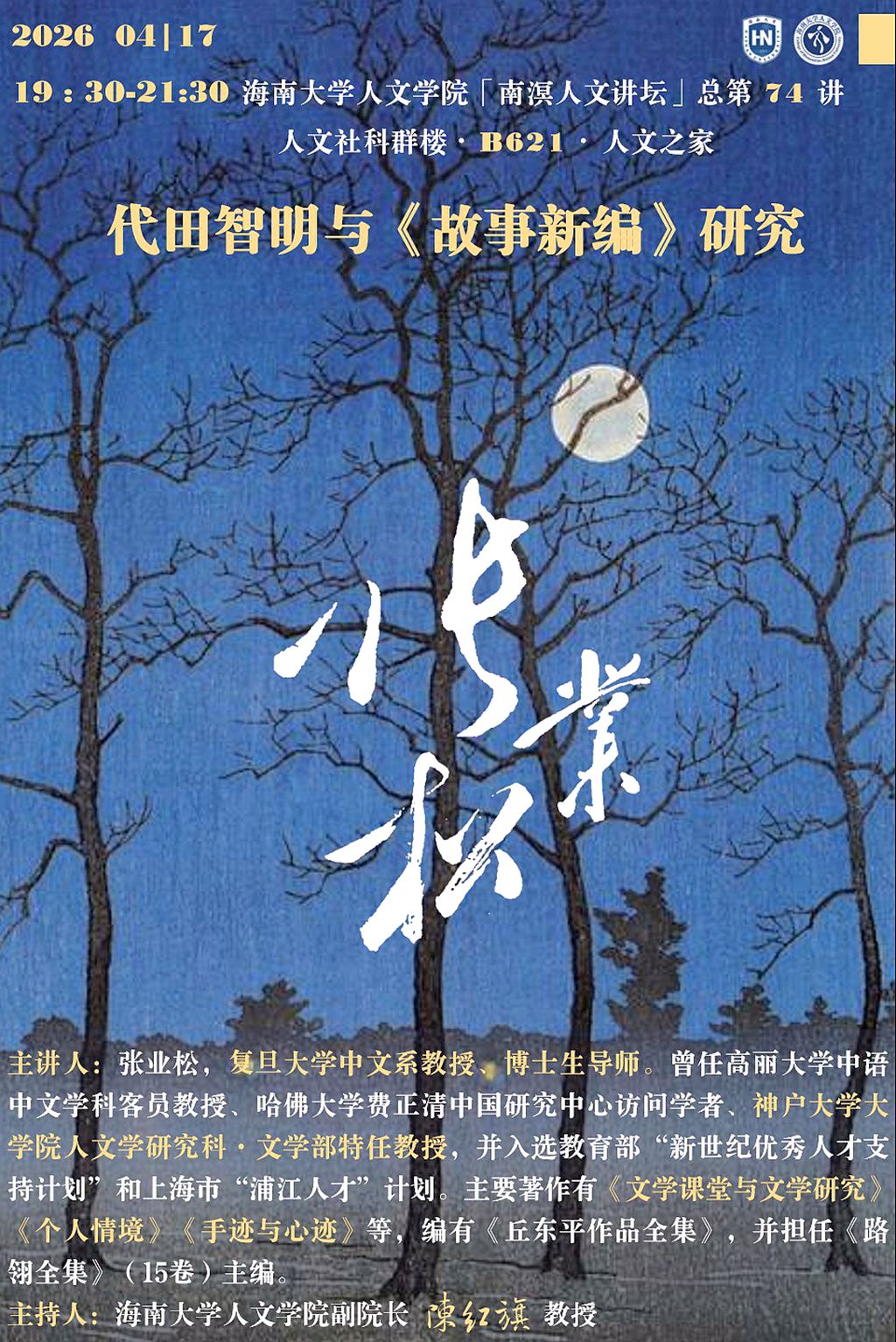 【学术预告】情色小说 “南溟人文讲坛”第74讲 张业松:代田智明与《故事新编》研究