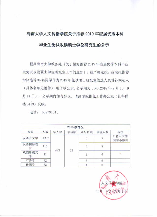 情色小说 人文传播学院关于推荐2019年应届优秀本科毕业生免试攻读硕士学位研究生的公示