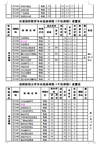 另外,“个性课程”修满15学分以上即可满足毕业所需选修课学分要求。请同学们参照附件中《人文传播学院2014级各专业课程体系学分分配表》做好选课计划,合理选择各学期课程。