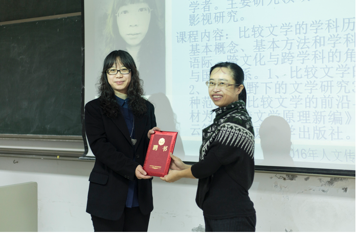 人文传播学院副院长石晓岩教授向滕威教授颁发“情色小说
