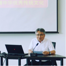 海滨教授的报告题目是《多维深耕 高维返本——小切口传播中华优秀传统文化》,海老师以李白、苏轼以及西域南海三个文化案例为小切口,探讨如何传承和弘扬源远流长、博大精深的中华优秀传统文化。首先,多维深耕,第一维是兴趣所致、气象森严的学术研究;第二维是问题导向、教学相长的课堂教学;第三位是驾驭媒体、引领民众的大众传播。其次,高维返本,前述三维依次推进,最终回到更高层次的学术研究和文化建构。