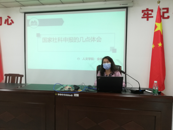 第二场交流会由金桂桃教授主讲,题目是《国家社科项目申报体会》。金桂桃教授首先从申报成功的关键要素入手,对国家社科基金项目的申报经验进行了总体概括。接着,金桂桃教授结合自身成功申报的经验,从国家社科基金项目的选题、国内外研究现状、研究内容、创新点等角度细致地分析了申报过程中应着重把握的要点。金桂桃教授指出,项目研究是一个学术过程,如同一次旅行,必有其起始的位置,既要找准项目的立足之点,也要充分展示研究目的以及研究内容的亮点。国家社科基金项目的申报要体现科研报国的使命担当,人文社科领域的高校教师应该通过科学研究,积极参与中国特色哲学社会科学学科体系、学术体系、话语体系的构建,积极参与中华优秀传统文化的创造性转化和创新性发展。