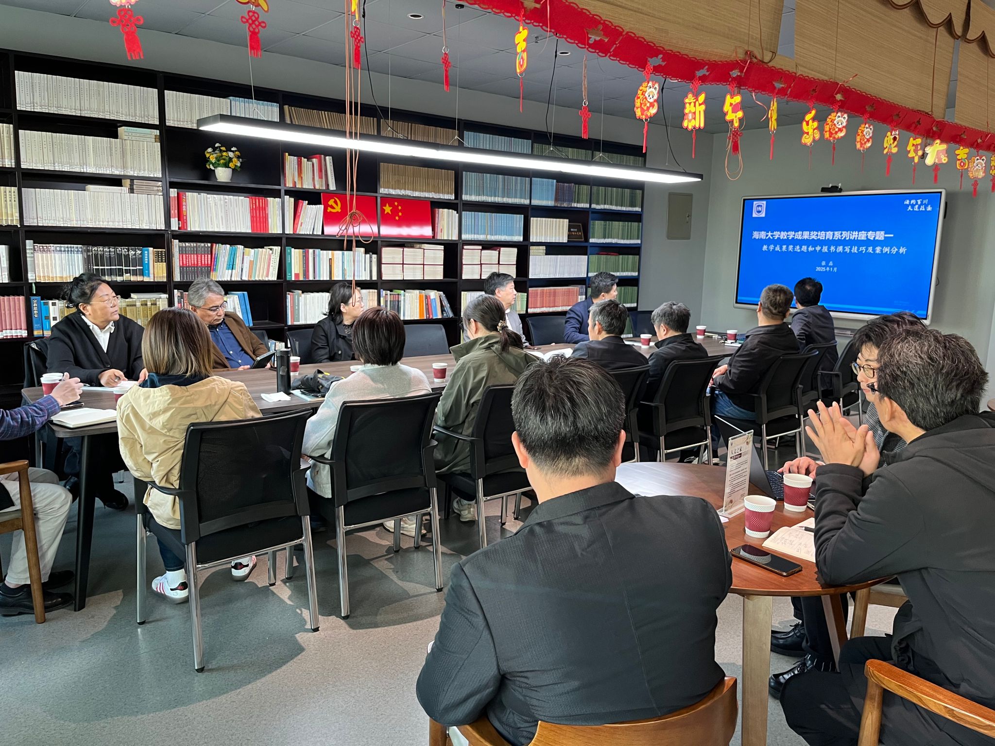 2025年学科建设与教学科研工作会议在社科楼B620人文之家举行,学院领导谭新红、杨元广、李彩霞、陈红旗、贾冬阳、章颜,各系室主任、一二级学科带头人、教研室主任参加会议。会议由院长谭新红主持。