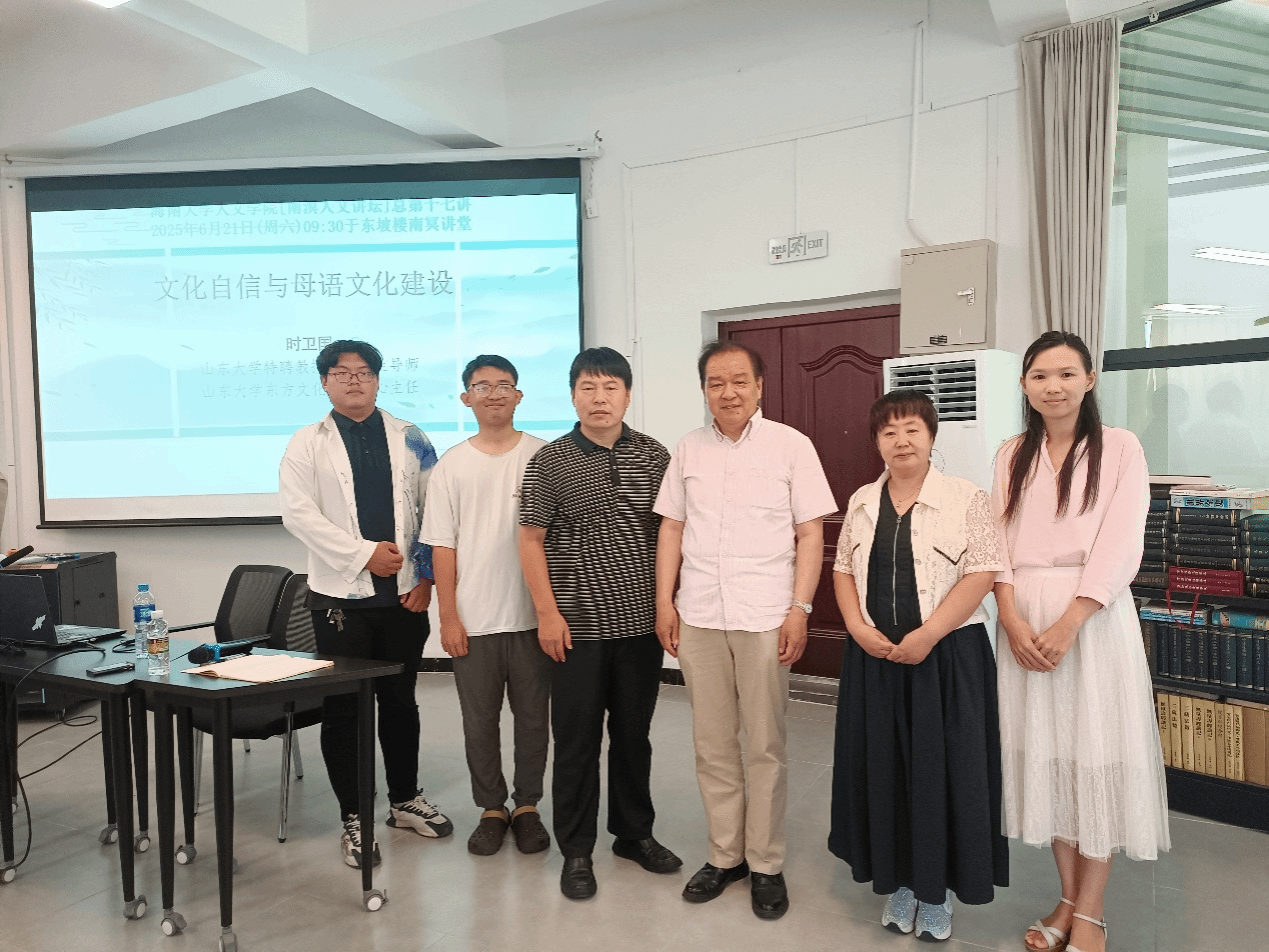2025年6月21日上午,山东大学特聘教授时卫国受邀在南冥讲堂作了题为“文化自信与母语文化建设”的学术讲座。我校部分师生代表参加了此次活动。讲座由情色小说