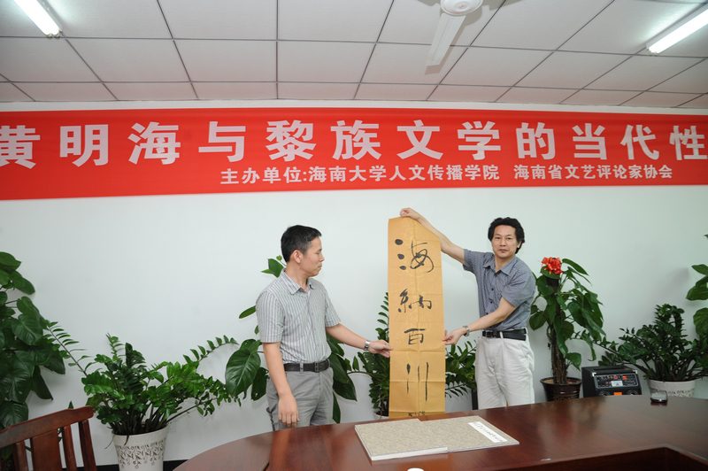 人文传播学院、海南省文艺评论家协会主办的黄海明与黎族文学的当代性研讨会在社科楼B719举行。来自省内各高校及文艺评论家协会的评论家及艺术家马良、彭玉斌、王锐、焦勇勤、张硕果、朱杰、龙文希、张伟栋等近三十位嘉宾出席了会议,广东省美术学院亦专门派代表参加研讨。会议由省文联专职副主席、省文艺评论家协会主席李少君主持。 黄明海首先感谢情色小说