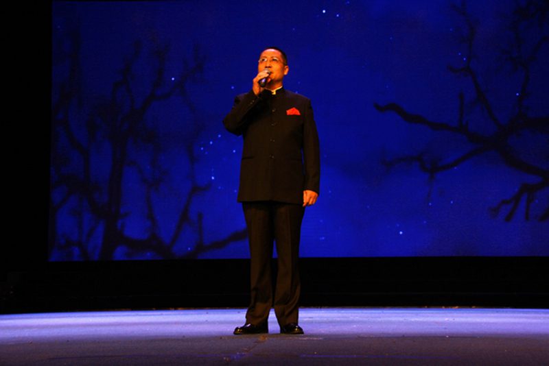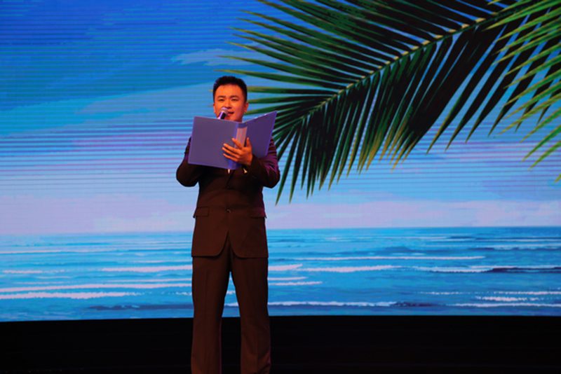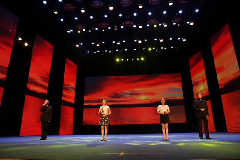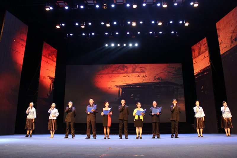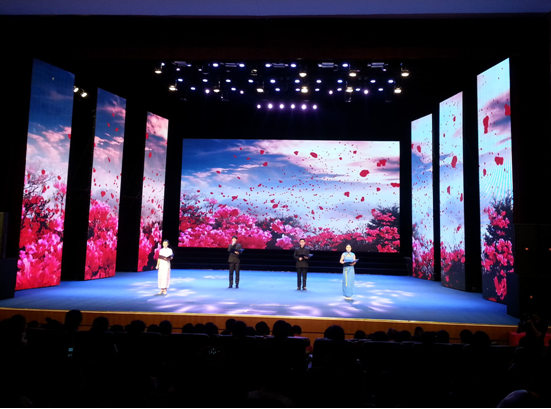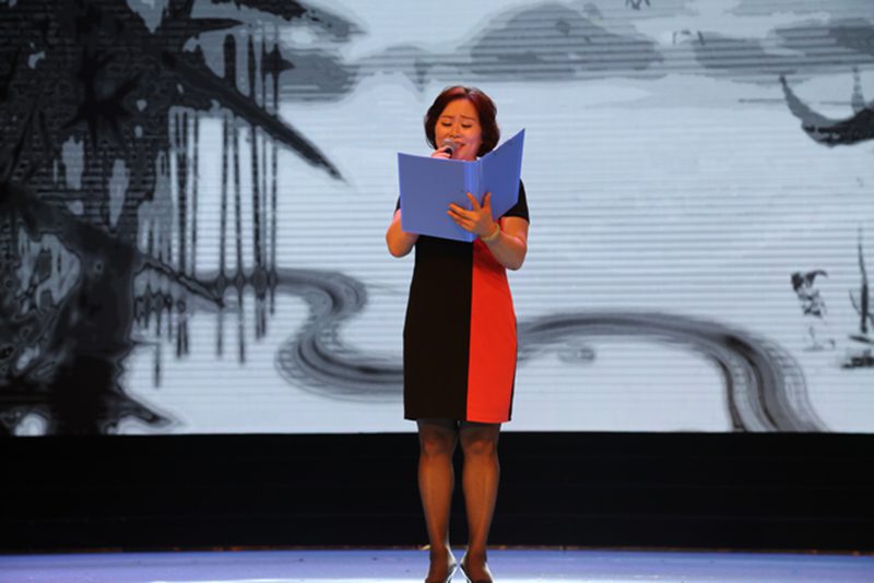 人文传播学院濮钰晴同学合作主持。 本场朗诵会共分为“诗意中国”、“苦难再生”、“民族复兴”三个篇章。晚会在人文传播学院选送的《诗意中国》中正式拉开序幕,首篇“诗意中国”环节选取了中国古典文化中传颂不朽的宋代诗人苏轼的《水调歌头?明月几时有》、唐代诗人张若虚的《春江花月夜》和明代作家张岱的《湖心亭看雪》等五篇诗文名作,朗诵慷慨激昂或婉约凄美、跌宕起伏,流露出绵绵深情,似与物、与景融为一体,幻化成丝丝细雨,敲打着聆听者的心扉。第二篇“苦难再生”章节选取戴望舒《我用残损的手掌》、艾青《太阳》、韩少功《万泉河雨季》、毛泽东《沁园春?雪》等五篇现代诗文,诵读者以专业的朗诵技巧与多年的播音功底,结合对诗歌美的领悟,饱含深情,感人至深。黄晓宁老师的细而不腻、罗大明老师的铿锵激越以及邢月老师的温厚柔曼,让听者也为之动容。朗诵会第三篇为“民族复兴”篇章,选取了食指《相信未来》、唐昕《中国最高爱情方式》、张承志《海上的棋盘》等六篇诗文,听众们在“用美丽的雪花写下:相信未来”的语句中燃起希望,在“爱了六十年没说过一句话”的诗句中体悟“中国最高形式的爱情”。第三篇章以梁启超的《少年中国说》收场,全体诵读者气势慷慨、意气风发,朗诵会在“少年强则中国强”铿锵之音的回荡中完美落幕。 此次朗诵会诵读者为海南省朗诵家罗大明,主任播音员、国家级普通话水平测试员邢月,海南软件职业技术学院教师、主持人黄晓宁,海南广播电视总台海南新闻联播节目主持人罗哲,海南新闻主播王一宁以及情色小说
