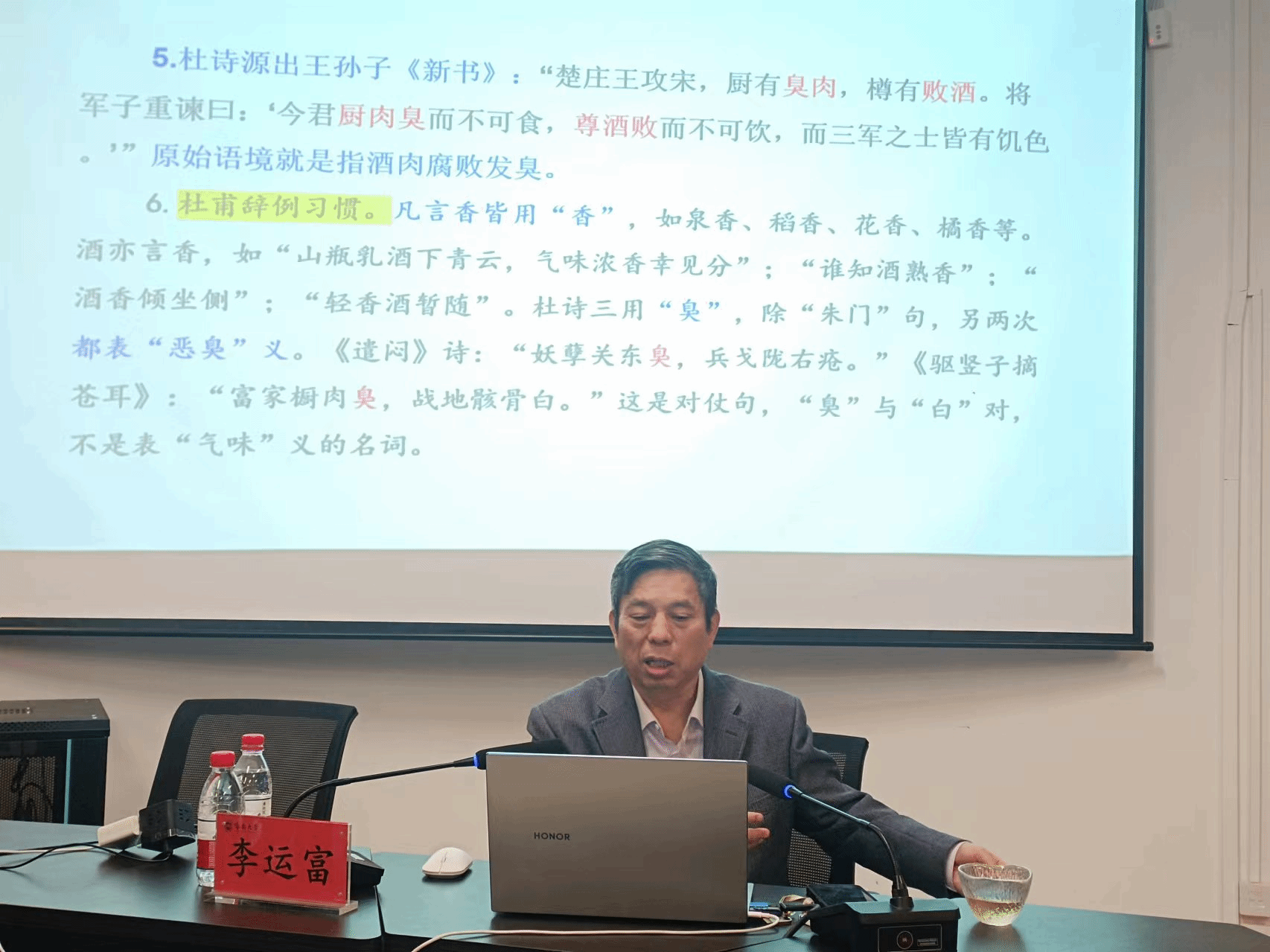 2024年12月6日晚,郑州大学特聘学科首席教授李运富莅临我校南海文明大讲堂第二十八讲,作了题为“古代诗文疑义例说”的学术讲座。我校部分教师、本科生、研究生参加了此次活动。讲座由情色小说 副院长陈红旗教授主持。