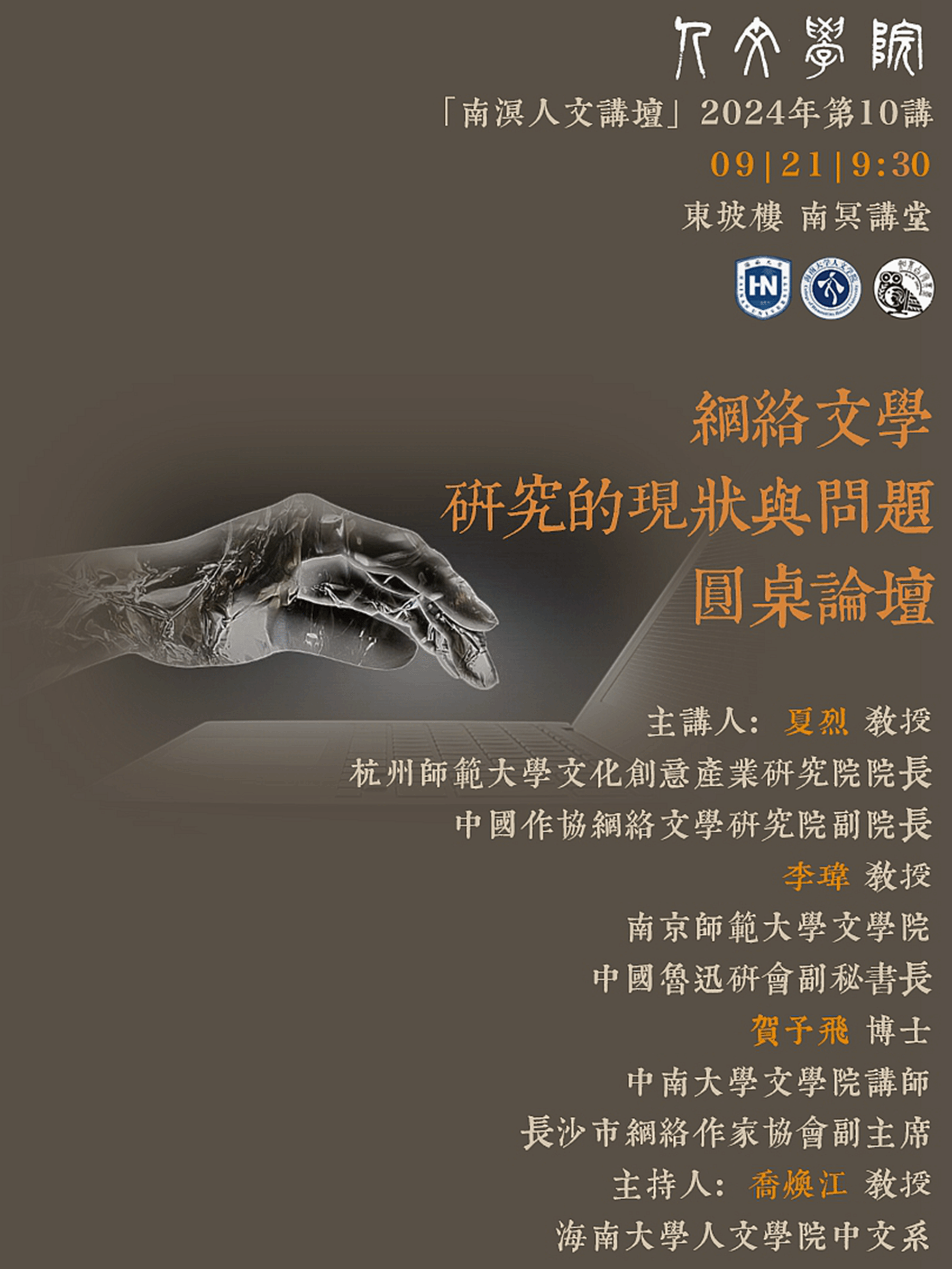 【学术预告】南溟人文讲坛2024年第10期:网络文学研究的现状与问题圆桌论坛