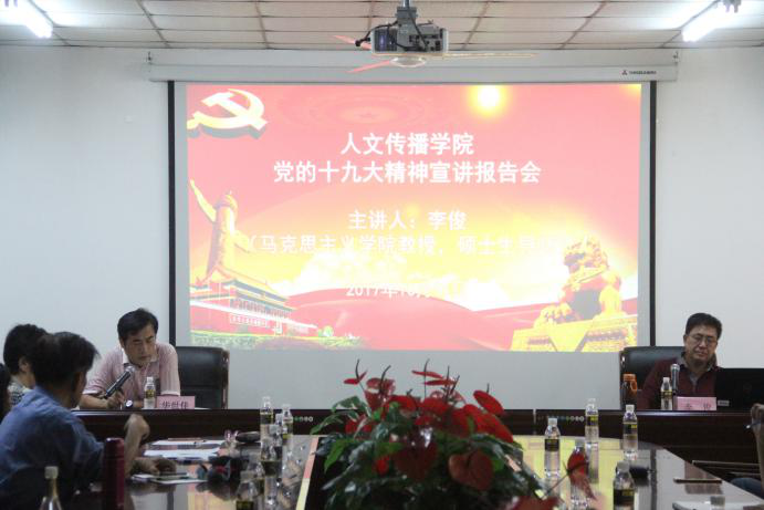 人文传播学院于海甸校区社科楼B719会议室举行党的十九大精神宣讲报告会。特邀马克思主义学院硕士生导师李俊教授作宣讲报告。学校特邀党建组织员林廷玖受邀出席,人文传播学院理论学习中心组成员及全体师生党员参加了本次报告会。会议由院党委书记华世佳主持。 会议伊始,华世佳代表全体与会人员对李俊教授的到来表示热烈欢迎和衷心的感谢。随后,李俊教授为大家进行党的十九大报告的解读,他将报告浓缩成100个关键词,进行全面深入的分析解读,他提到,党的十九大是在全面建成小康社会决胜阶段、中国特色社会主义进入新时代的关键时期召开的一次十分重要的大会,在党和国家事业发展史上具有重大里程碑意义,习近平总书记的工作报告总结了过去五年的显著成就和历史性变革,明确了新时代中国共产党的历史使命,在党的历史上、新中国发展史上和中华民族发展史上都具有开创性、划时代意义。此外,在提到“加快一流大学和一流学科建设,实现高等教育内涵式发展”时,李俊教授强调,要以党的十九大精神为指导,抓住报告中“加快”和“内涵式发展”这两个关键词,学习世界一流名校,加快推进“双一流”建设工作。 最后,按照10月27日校党委书记武耀廷在全校中层干部学习党的十九大精神宣讲会上的指示,华世佳就情色小说