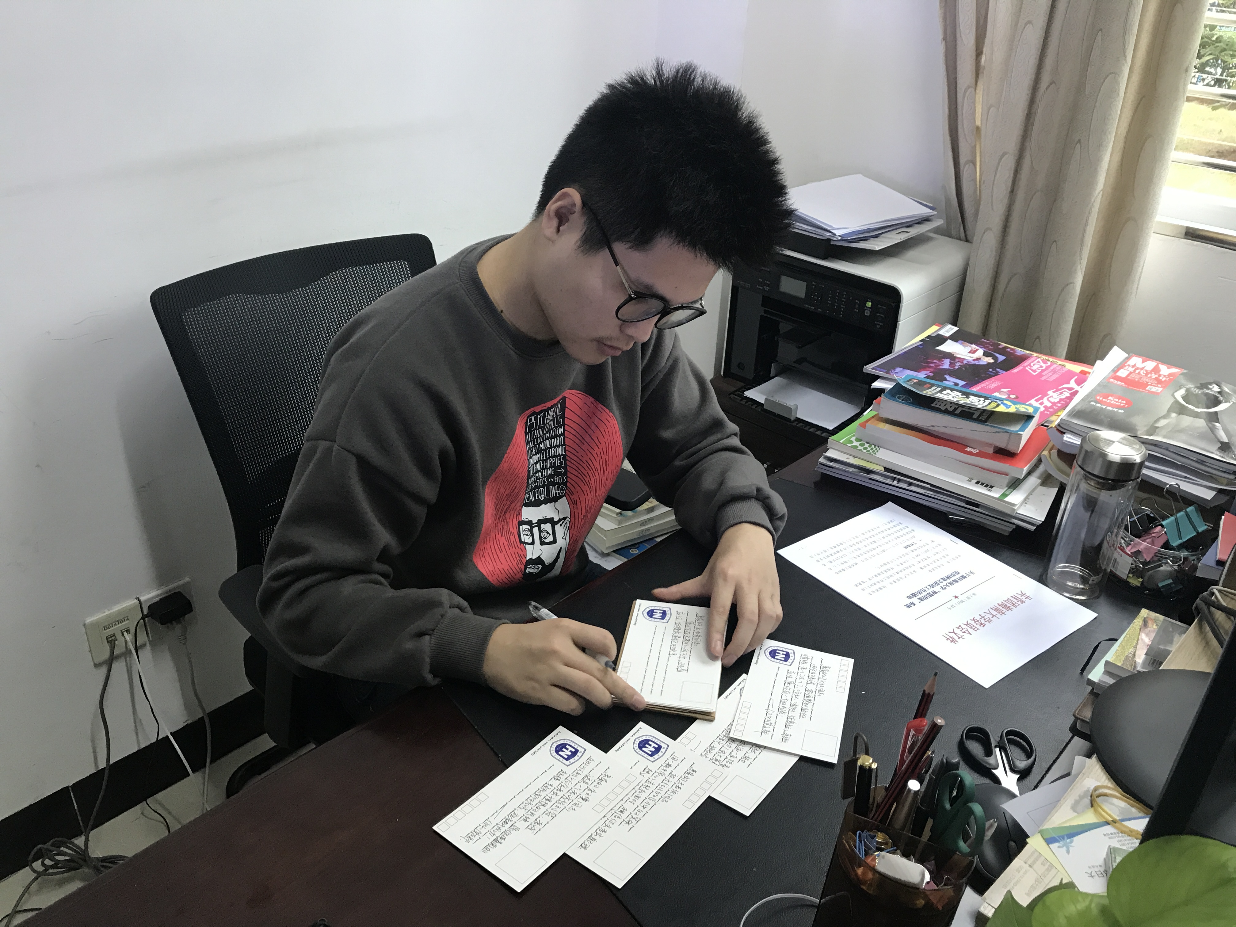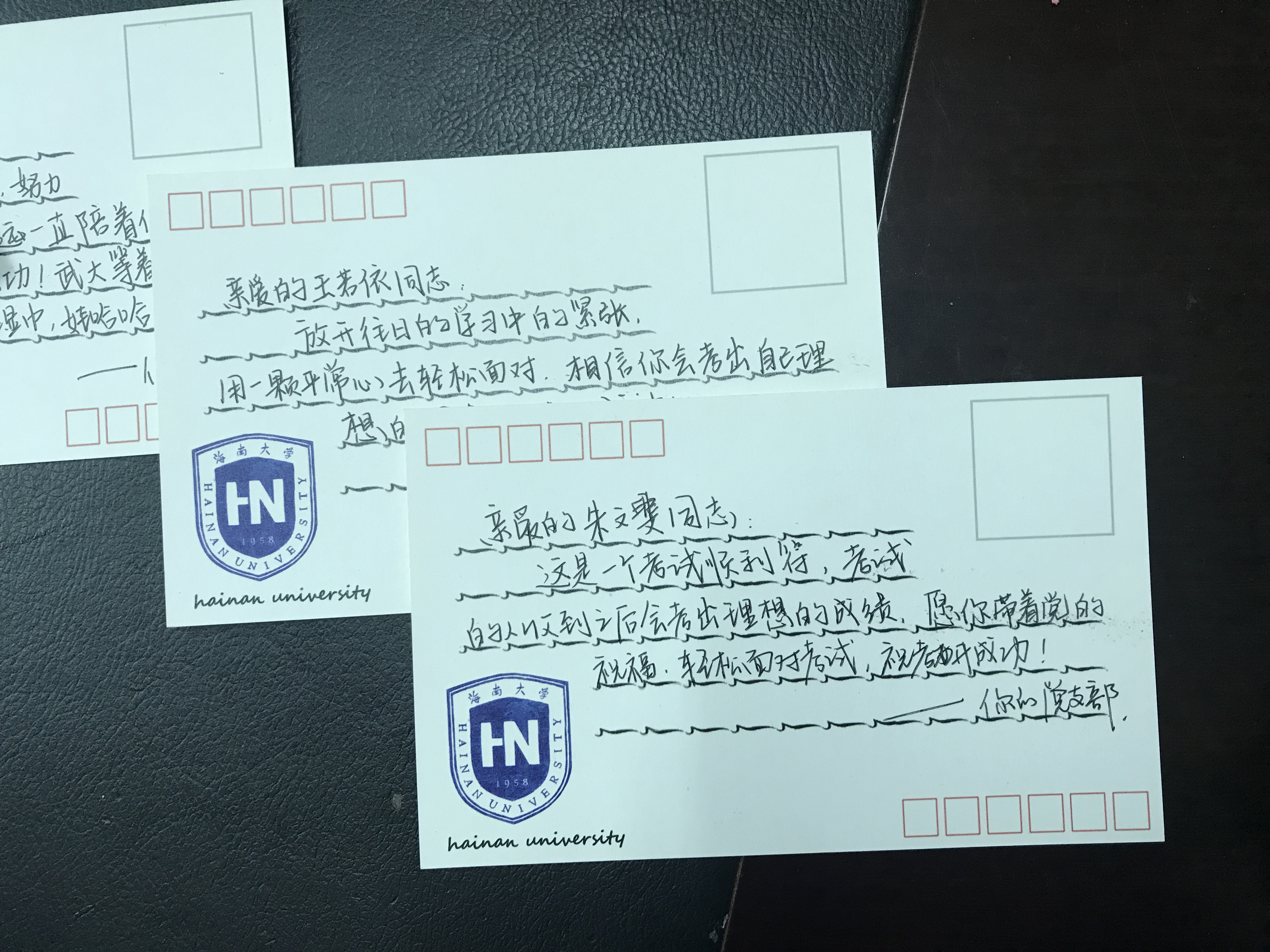 “别驻足,梦想不停追逐……祝新传党支部考研的小伙伴梦想成真!”2017年12月22日,考前的这一天,新传学生党支部每位备考硕士研究生入学考试的党员都收到了这样一张写着祝福语的卡片以及一份“考研加油包”(内含能量巧克力、提神湿纸巾等),礼物虽轻情意重。埋头苦读的莘莘学子收到了来自党支部无微不至的关系与关注,感到丝丝暖意。