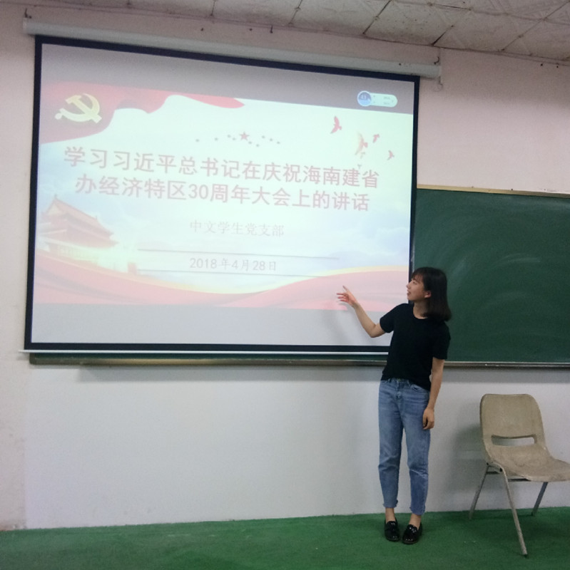 4月28日上午,中共人文传播学院中文学生党支部在一教1T301组织召开理论学习会,全文学习习近平总书记在海南建省办特区30周年大会上的讲话等重要文件精神,组织委员黄梅梅主持学习,支部党员进行了深入的探讨并做了相关主题发言。