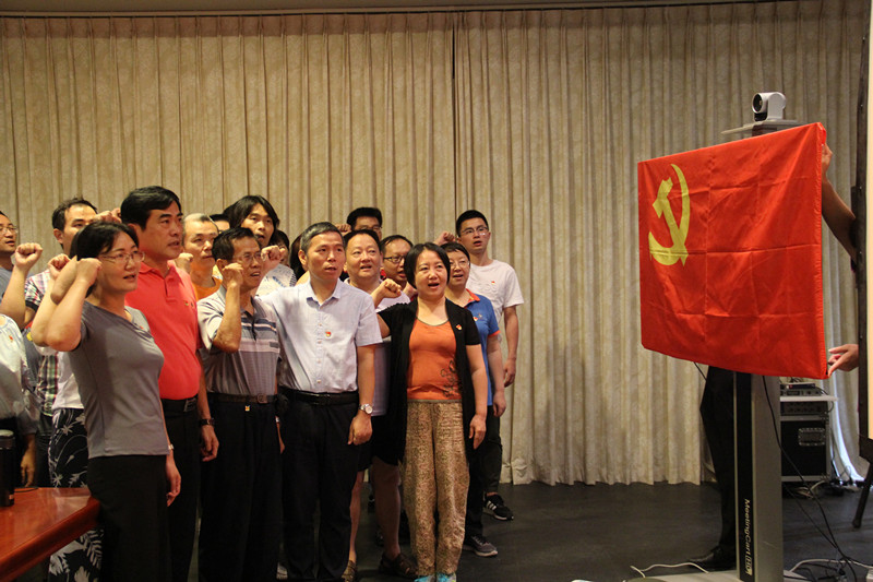 7月1日,在党的生日这一天,学院教职工党员在党委书记华世佳的带领下面向党旗宣誓,重温入党誓词,回顾入党时的庄严承诺,激发了全体党员,不忘初心,永远对党忠诚的责任感和使命感。