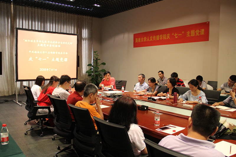 宣誓完毕后,举行人文传播学院党委庆“七一”主题党课活动。在党委书记华世佳的主持下,院长刘复生、党委副书记孙晓媛、教工第一党支部书记李音、教工第二党支部书记何晶娇分别就学习习近平新时代中国特色社会主义思想、习近平总书记在庆祝海南建省办经济特区三十周年上的重要讲话精神、中共中央12号文件精神以及习近平总书记系列重要讲话精神等内容,结合自己的专业研究、本职工作等方面阐述在国家力量衰微时共产党作为一股强大力量实现中华民族从站起来、富起来到强起来是多么的伟大;作为一名党员教师要用自己的德行以文化人、以文育人;作为一名文艺工作者要在党的领导下以复兴中华民族优秀传统文化为己任;作为一名党支部书记和教师党员,要时刻注意发挥党支部的战斗堡垒作用和党员的先锋模范作用。这些内容的讲解使在场同志深受启发,纷纷表示作为教师党员要以党员标准严格要求自己,提高自身修养,坚持正确的办学方向,以立德树人为根本任务,立足本职做好工作,与时俱进,开拓创新,为推动学院建设发展做出自己应有的贡献。