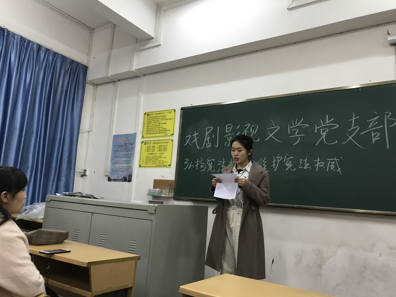 12月4日是“国家宪法日”,为弘扬宪法精神,维护宪法权威,人文传播学院戏剧影视文学学生党支部于12月14日召开“弘扬宪法精神,维护宪法权威”主题学习活动。