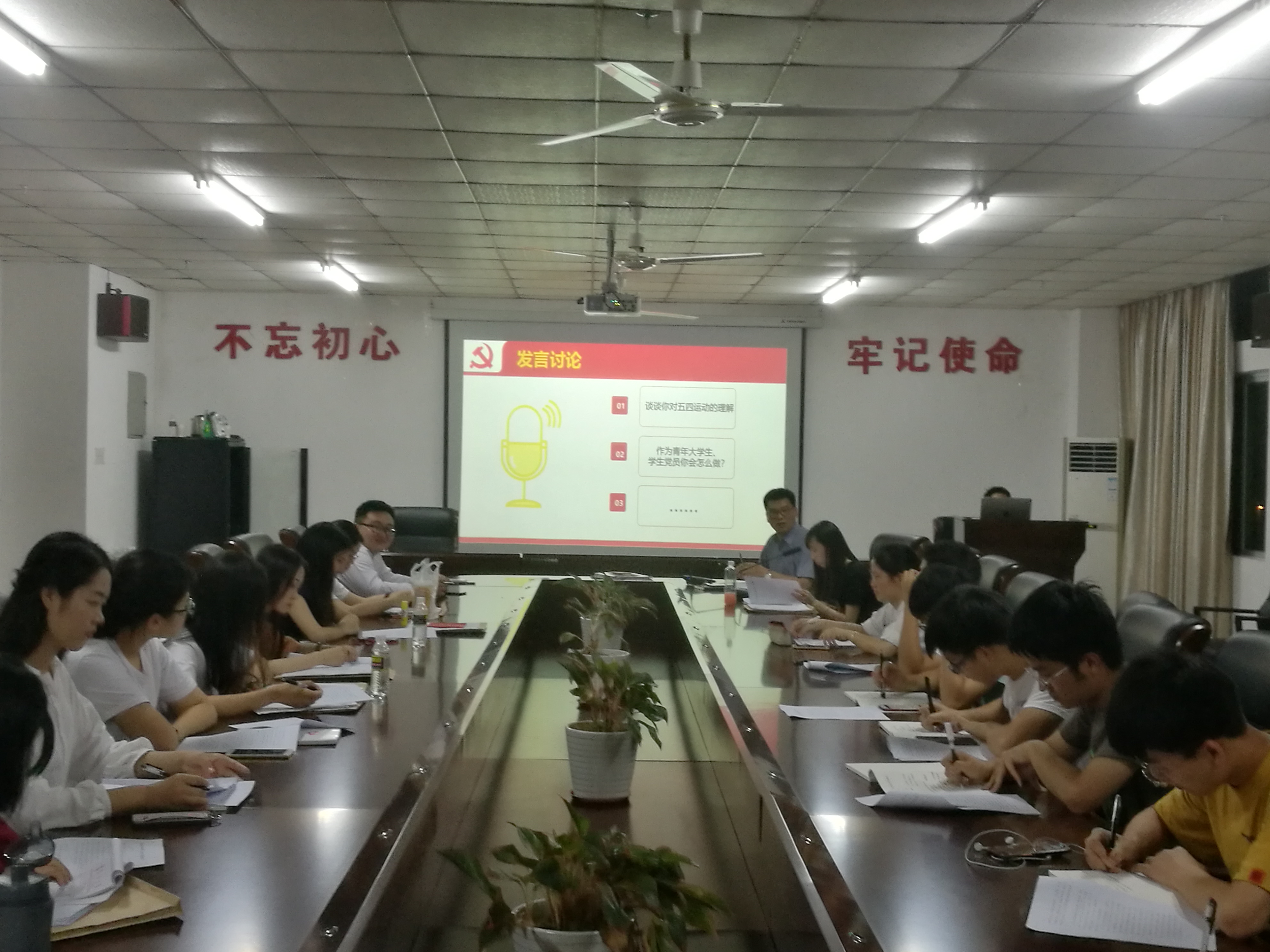 5月19日晚上8:00,中文党支部于社科楼B719组织召开中文学生党支部主题党日活动暨毕业生党员欢送仪式。会议由组织委员黄梅梅主持,会议主体分为四个部分。