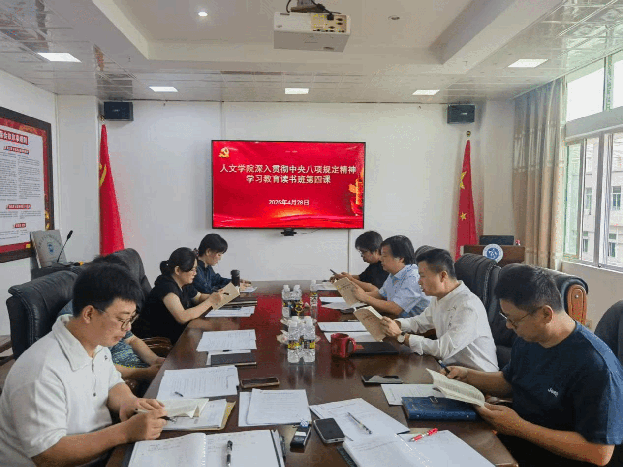 党委在社科楼B615会议室举行深入贯彻中央八项规定精神学习教育读书班第四课,学院领导班子成员、党委委员参加会议。