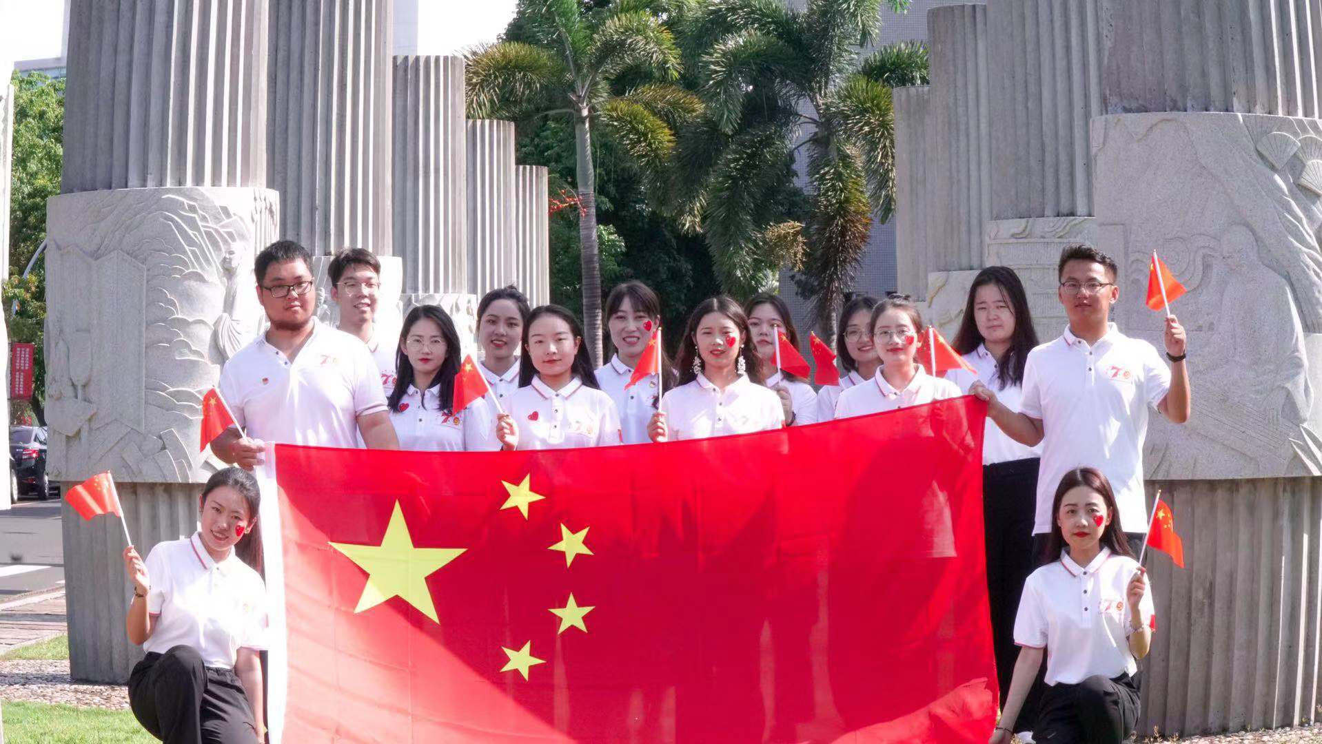 为迎接中华人民共和国成立70周年,引领支部党员深入学习贯彻习近平新时代中国特色社会主义思想和党的十九大精神,增强自身的国家荣誉感和历史使命感,2019年9月12日下午,人文传播学院戏剧影视文学学生党支部组织“唱红歌·与国旗同框”主题党日活动,通过歌唱祖国的形式深切表达了青年党员们对祖国的热爱与自豪。