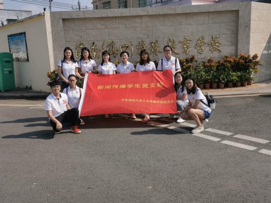 人文传播学院新闻传播学生党支部来到海南(海口)特殊教育学校,开展党支部的义务支教志愿活动。这是“不忘初心、牢记使命”主题教育下的“党员践诺先锋”活动和“党员服务做表率”活动,发挥党员表率示范作用,以实际行动践行初心和使命。