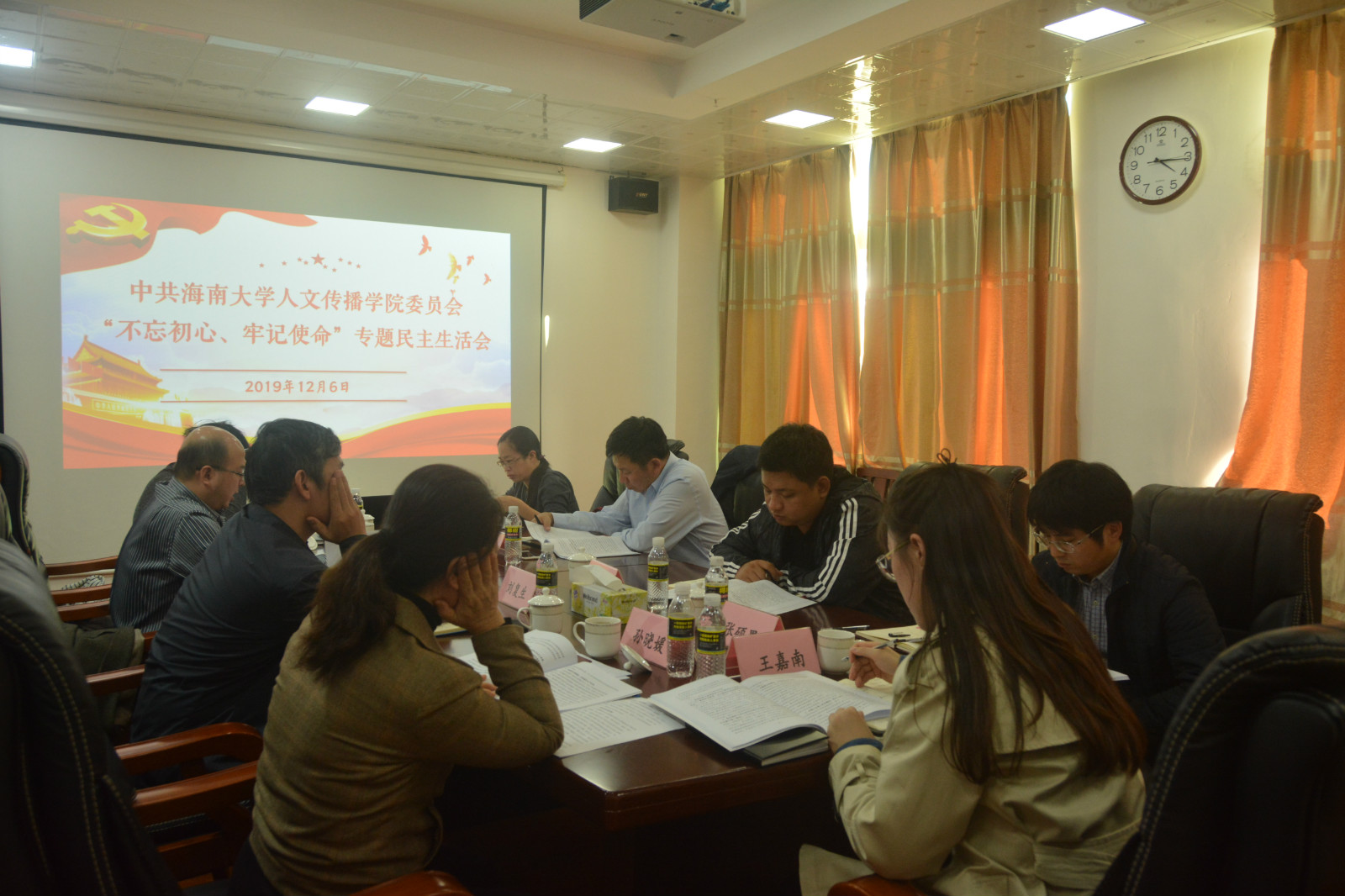 2019年12月6日下午,人文传播学院“不忘初心、牢记使命”专题民主生活会在社科楼B615会议室召开,党员班子成员邱华祥、刘复生、孙晓媛、李彩霞参加,非党员班子成员石晓岩、张硕果列席,校党委常委、副校长曹宪忠亲临会议指导。同时,学校主题教育督查组成员林冬冬和学院党建兼职组织员王嘉南列席会议。会议由邱华祥主持。