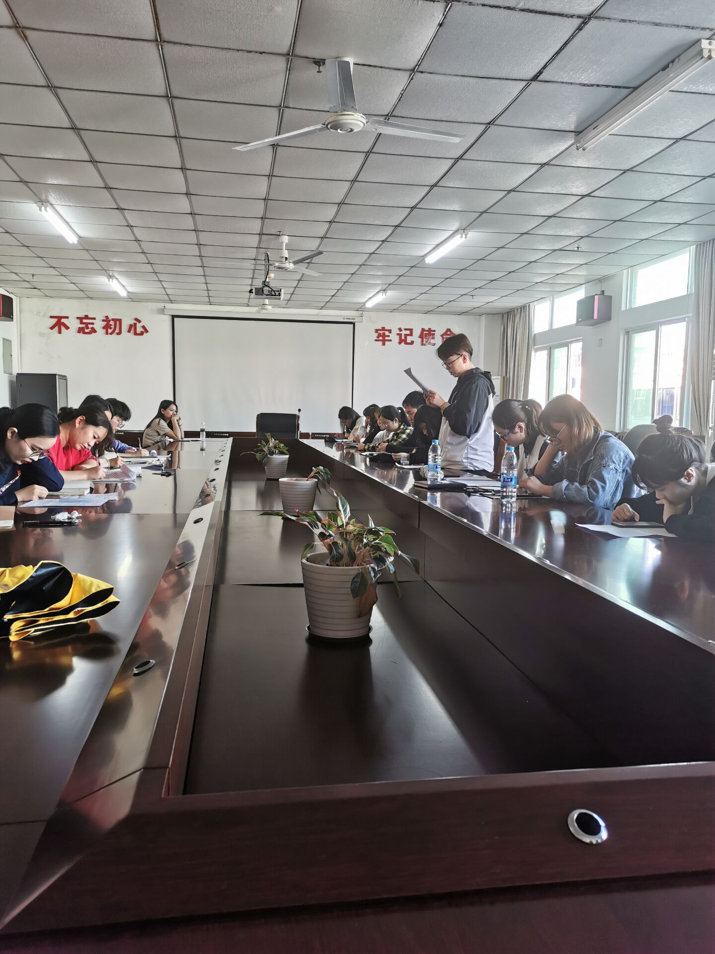 预备党员转正之后,党支部书记李洁进行总结发言,她首先对成功转为正式党员的同志们表示衷心的祝贺,同时希望党员们不忘初心,严格待己,遵守党的规章制度,养成良好的习惯。此外,带领全体党员一起学习党的十九届四中全会精神,并要求党员在寒假期间认真思考我们国家制度和国家治理体系,思考“应该坚持和巩固什么、完善和发展什么”这个重大政治问题。