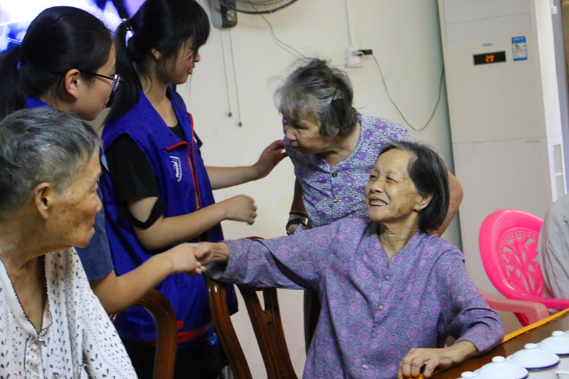 志愿者们受到老人的 欢迎