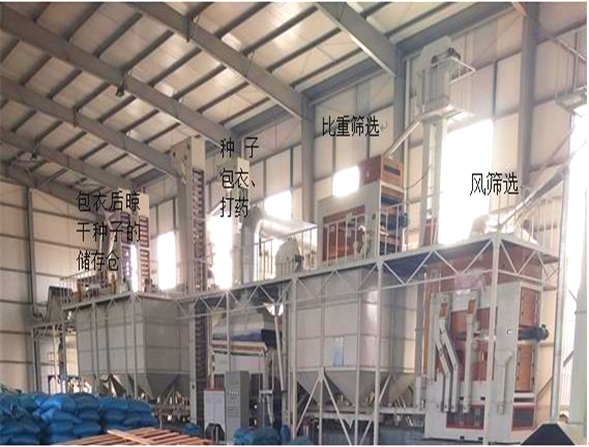 当前面三个流程完成后再通过全自动与半自动包装机进行小袋包装和大袋包装,按照国家要求附以二维码标识并用二维码扫描器上传到电脑后进行恒温冷藏或定点发往播种区。相关负责人还强调公司再发展几年后会升级更为先进的机器,装袋后由机械手抓袋摆袋,争取园区拥有四套大功率选种机。
