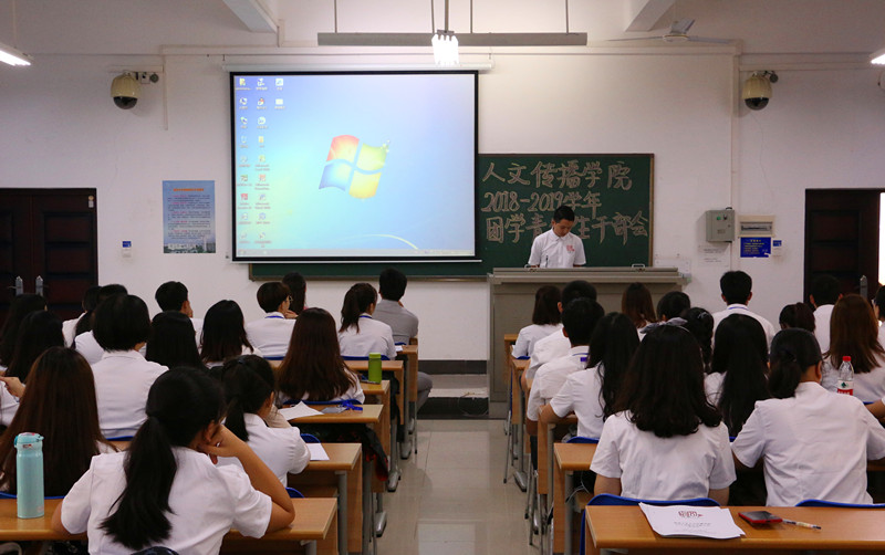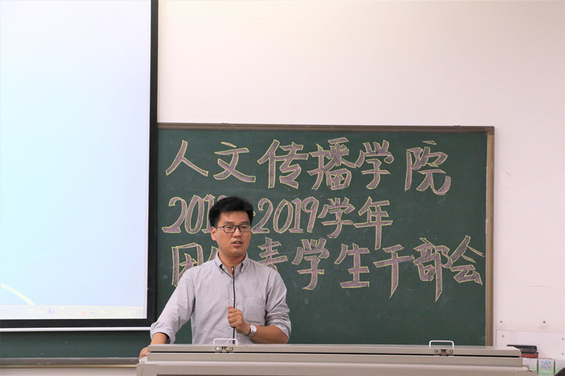 人文团学组织新学期全体学生干部大会于8月28日下午在海甸校区召开。学院学工与团委办公室熊文军、王森森,王嘉南、李洁四位老师参加本次大会并做相关工作部署。学生团委副书记彭丽桦主持本次大会。